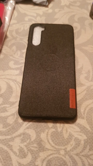 Очень красивый чехол, в коробочке. На ощупь приятный. Друг с таким ходит пару месяцев, выглядит отлично, ничего не отклеивается. На моем небольшой брак, складчка на ткани, но не мешает. Закажу ещё других цветов.