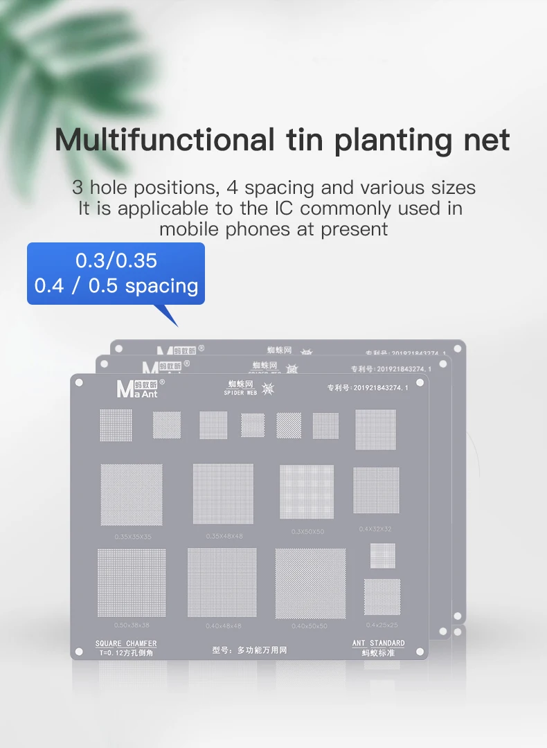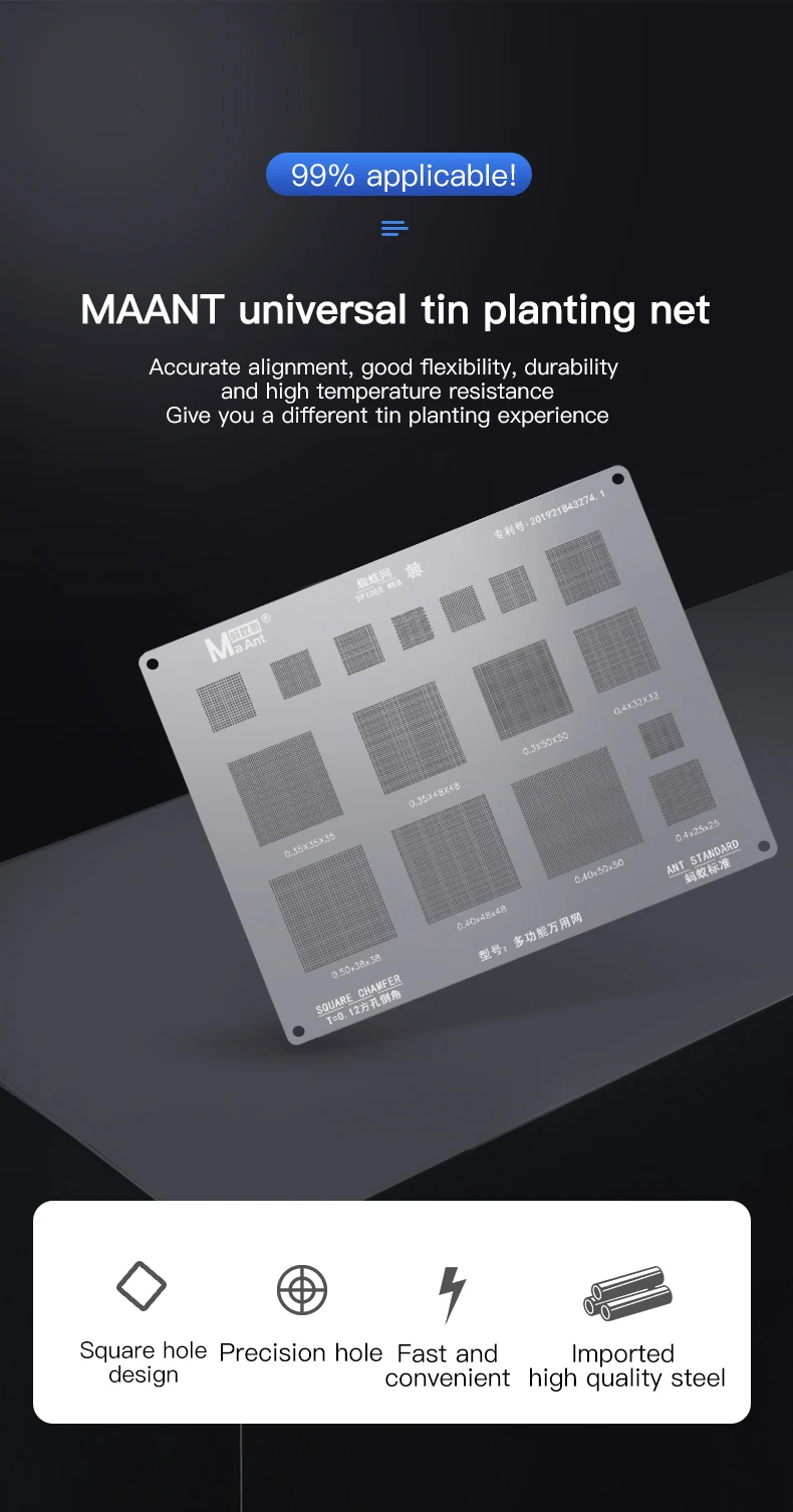 Многофункциональный Универсальный трафарет MaAnt для реболлинга BGA для 0,3 0,35 0,4 0,5 параллельное отверстие на 45 градусов невыровненное отверстие сетка для растений