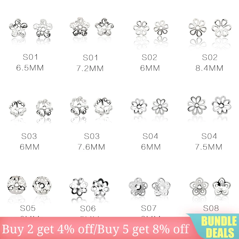 Бусины из стерлингового серебра 925 пробы с цветком, 5-8 мм, комплект для изготовления цепочек и браслетов, фурнитура для изготовления ювелирных изделий