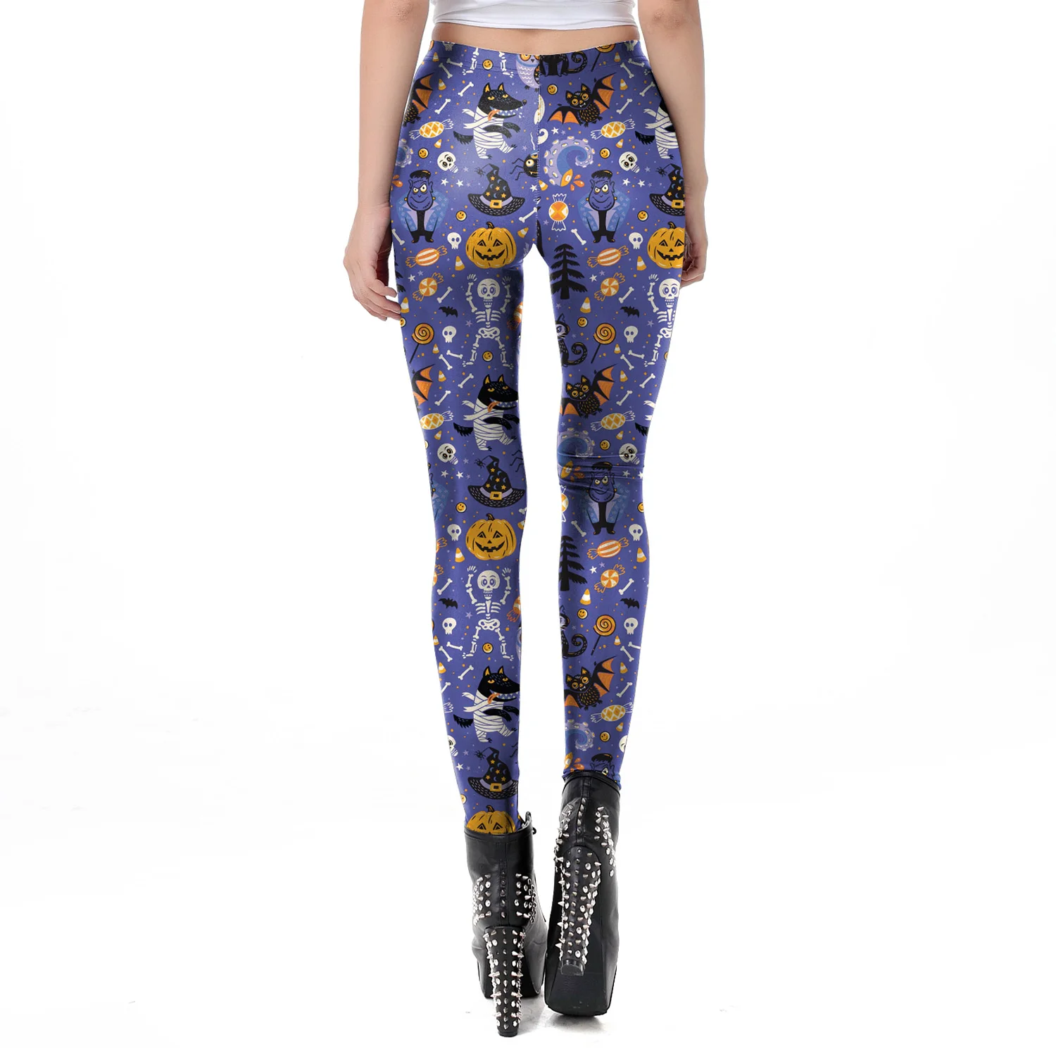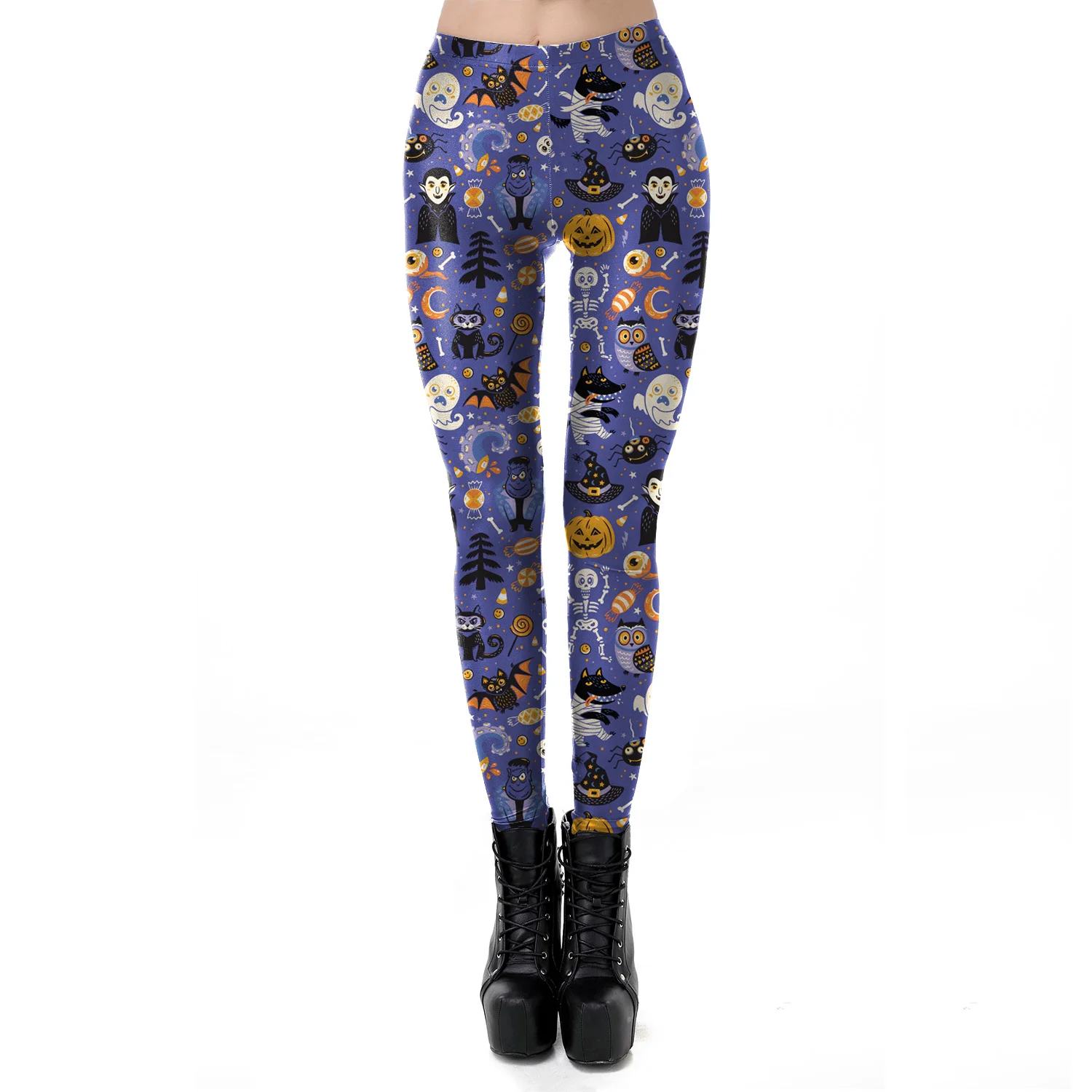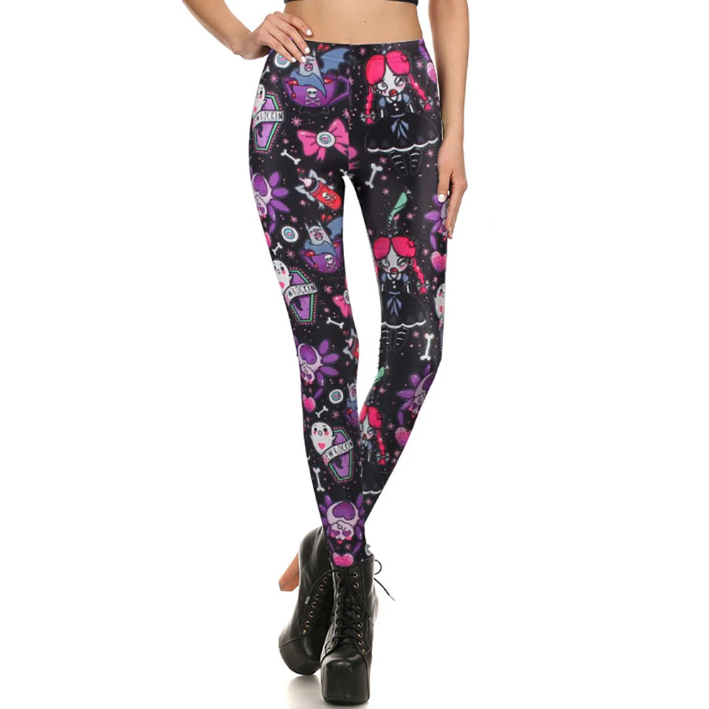 Женские леггинсы с героями мультфильмов ты мой секрет Хэллоуин, фиолетовые, синие, летучая мышь, пумкин