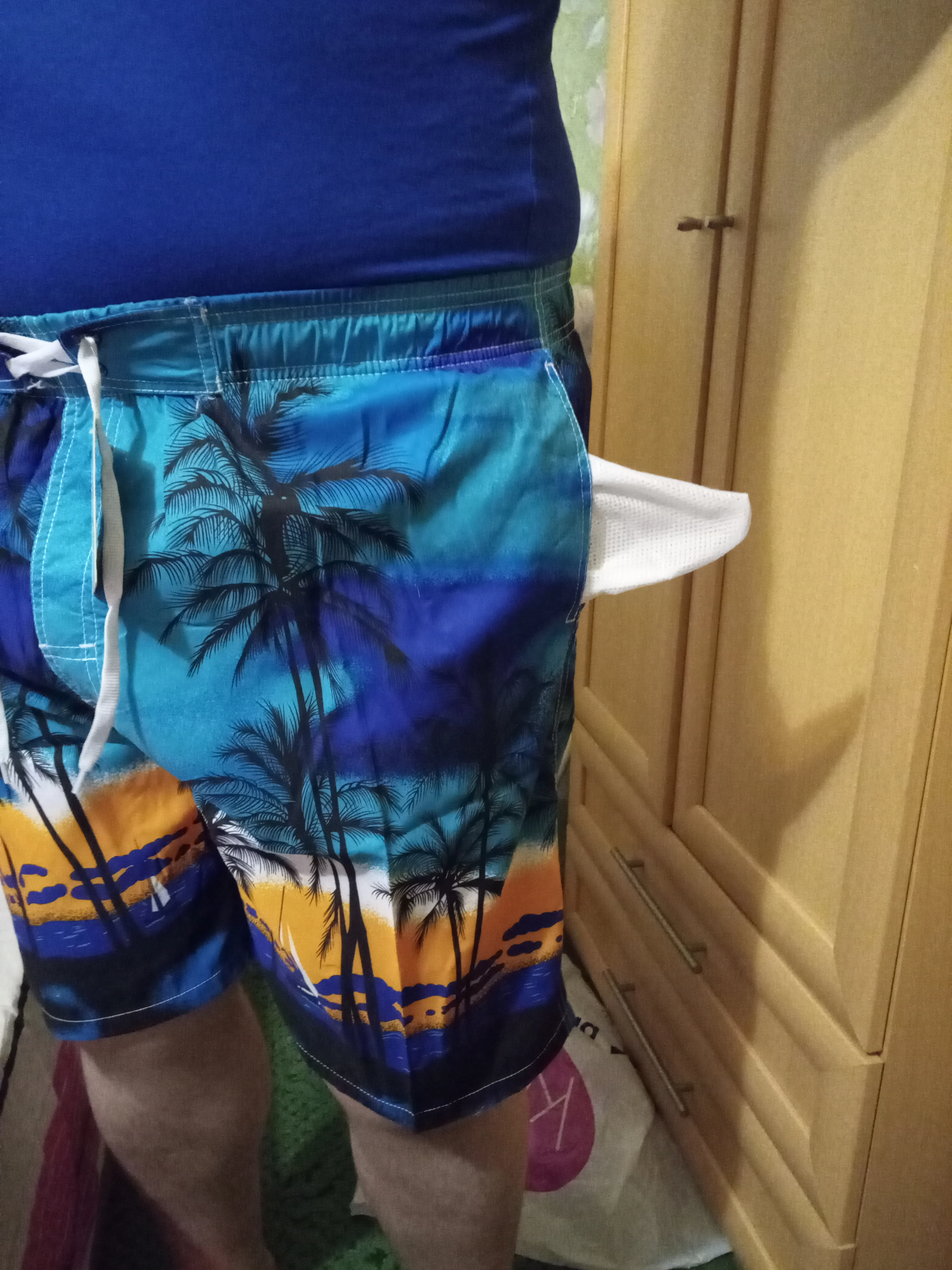 шорты отличные. внутри подкладка из сетки, можно как плавки, но я отрежу и будут просто легкие шорты ткань синтетика, быстро сохнет выглядят отлично