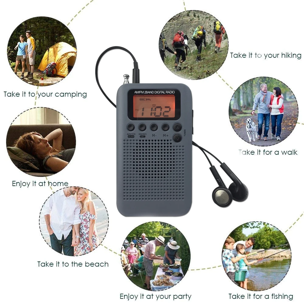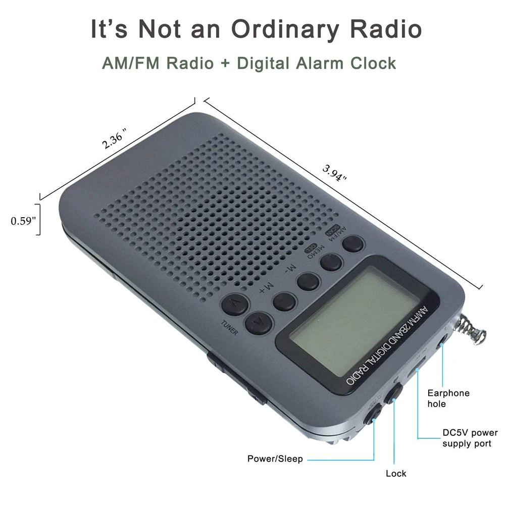 Мини-динамик JINSERTA с ЖК-дисплеем, цифровым FMAM радио, будильником, функцией отображения времени и разъемом для наушников 3,5 мм и зарядным кабелем