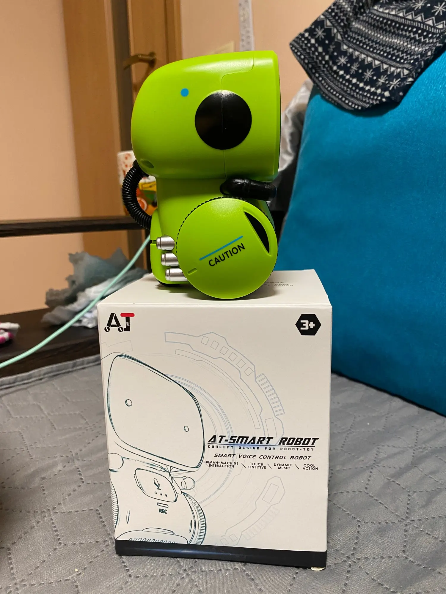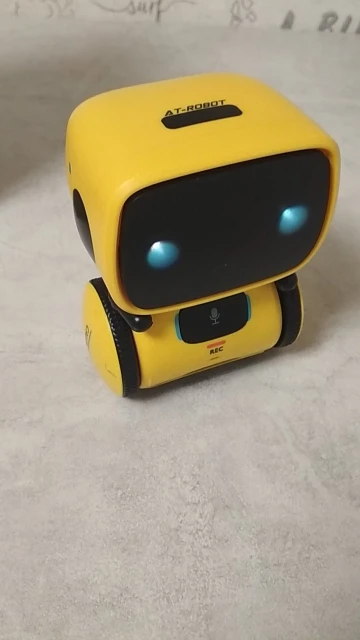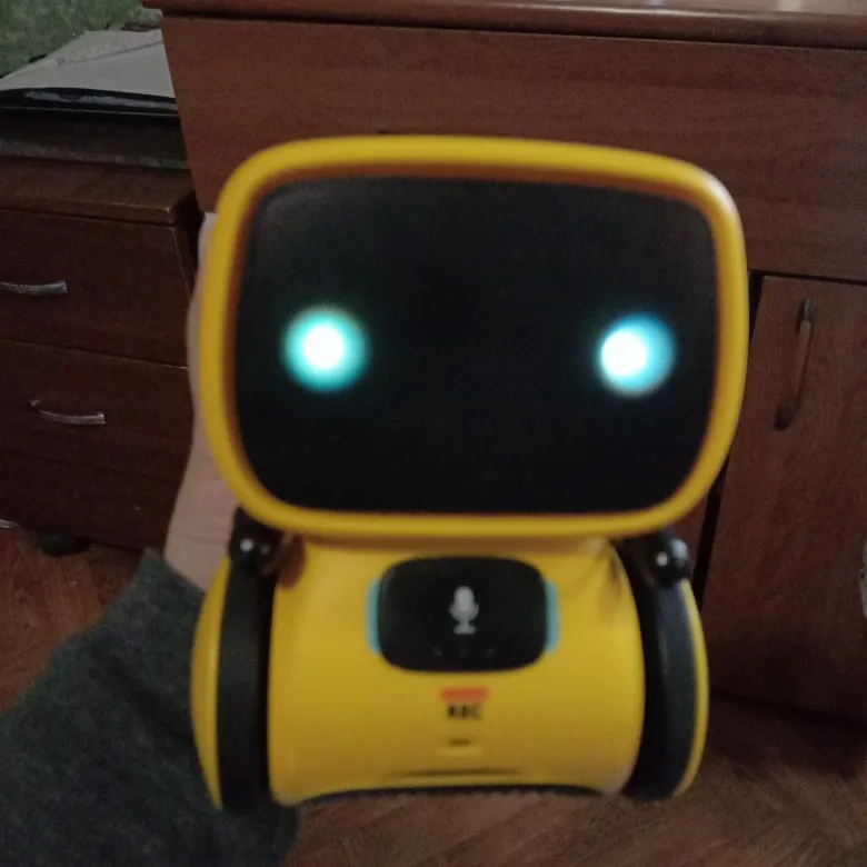 Прикольный робот. Не всегда понимает команды, надо говорить по слогам. Утяжелил его гаечками приклеив на термоклей, а то двигаясь назад падал головой на пол. Рекомендую.
