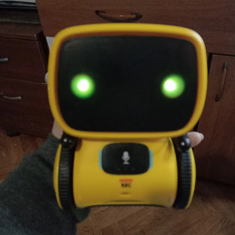 Робот прикольный, команды выполняет, говорит четко, разбочиво. Музыка, правда, через пищалку, могли бы динамик поприличнее поставить.