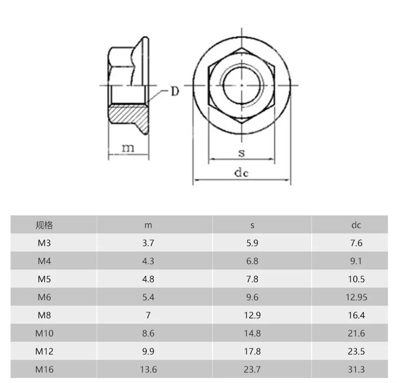 20 шт. 304 фланцевые шестигранные гайки из нержавеющей стали, фланцевые гайки M6 DIN6923