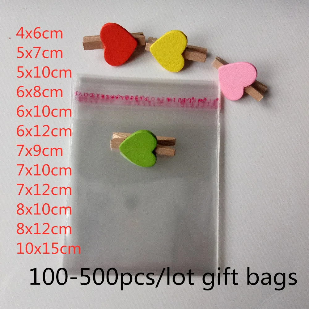 500 шт.лот Подарочные Упаковочные пакеты, прозрачные самоклеящиеся пластиковые пакеты из ОПП целлофана, мешки для ювелирных изделий и Упаковочные пакеты для хранения