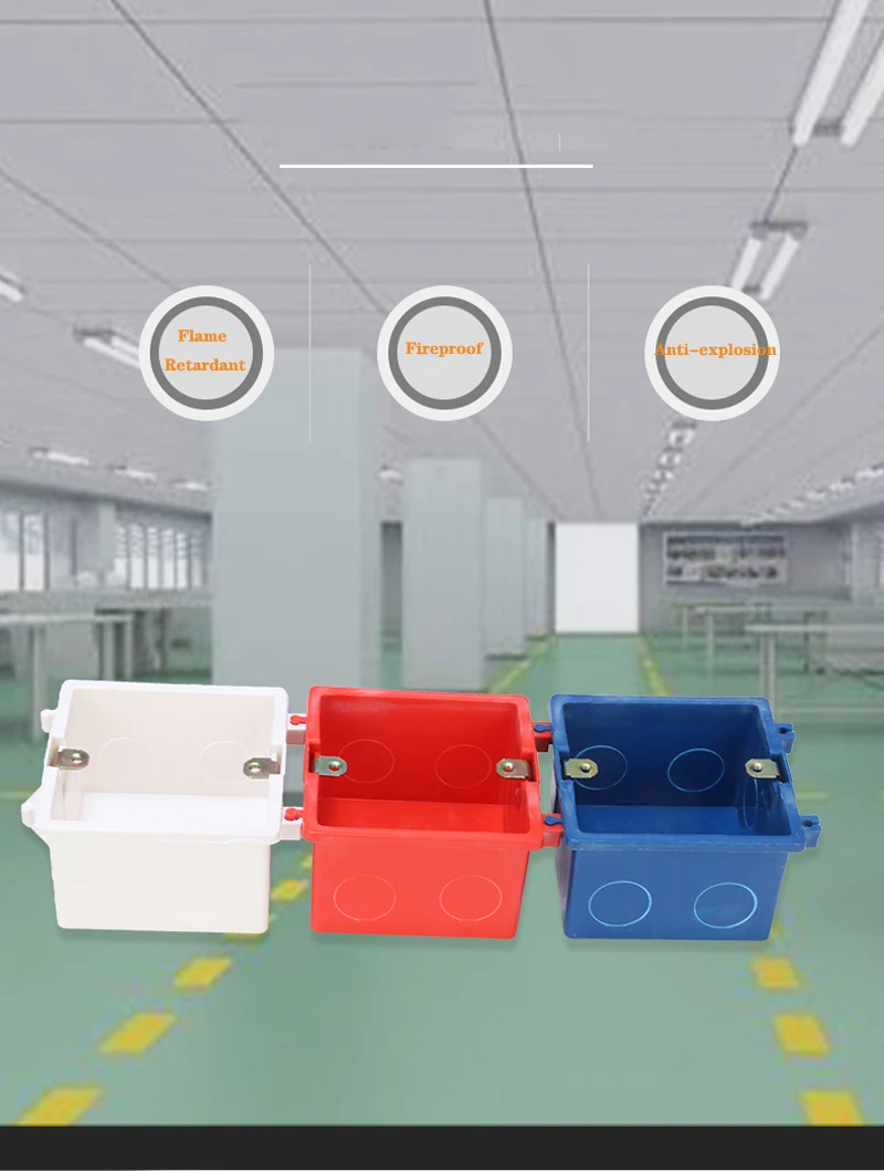 Название: Скрытая распределительная коробка с одним соединением 86 типа Материал: огнестойкий ПВХ, сертификация 3C A099904 Особенности: огнестойкий, огнестойкий, взрывозащищенный Простая установка, практичная в домашних условиях, простая и современная Особенности: высокое качество, Автономная Пряжка, легко соединяется