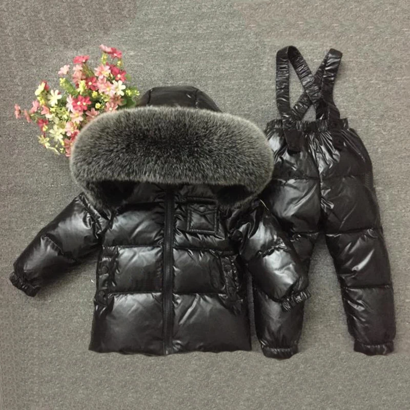 Детский зимний теплый комбинезон От 2 до 7 лет, большая толстая одежда из натурального меха, зимняя водонепроницаемая верхняя одежда для мальчиков, комплект из 2 предметов, пуховая куртка для девочек, пальто