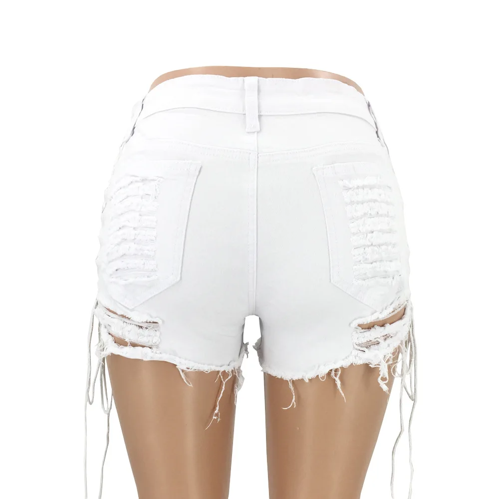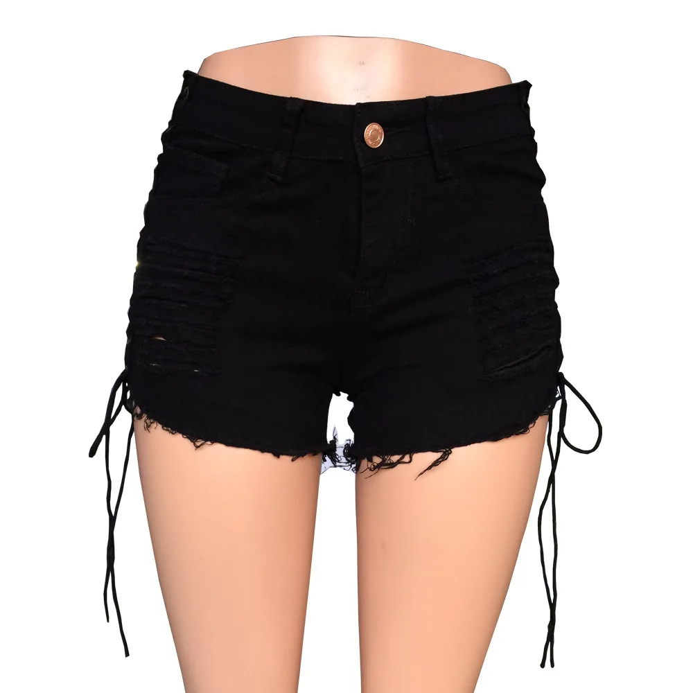 Сексуальные женские джинсовые шорты, однотонные рваные шорты со средней талией на шнуровке, 2018 летние облегающие короткие джинсовые мини-шорты размера плюс