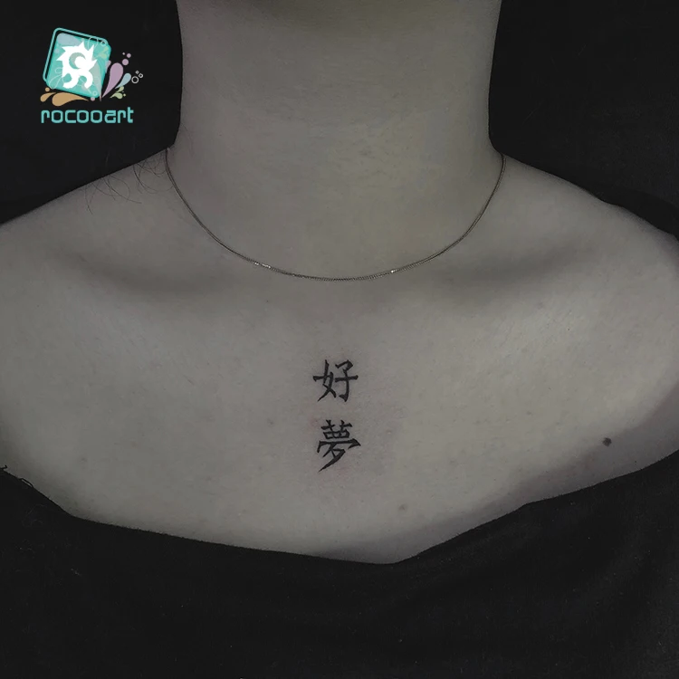 Татуировка Rocooart, водостойкая, черная ключица, оригинальная, Классическая, временная татуировка для боди-арта