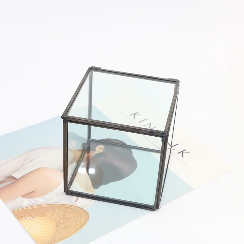 Ретро квадратная стеклянная шкатулка для драгоценностей, медная рамка, Европейское украшение, стеклянный Цветочный дом, ремесла, шкатулка для хранения ювелирных изделий