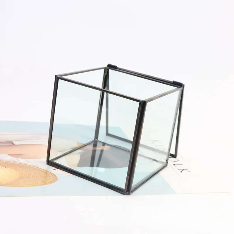 Ретро квадратная стеклянная шкатулка для драгоценностей, медная оправа, Европейское украшение, геометрия, стеклянный цветок, поделки для дома, шкатулка для хранения ювелирных изделий