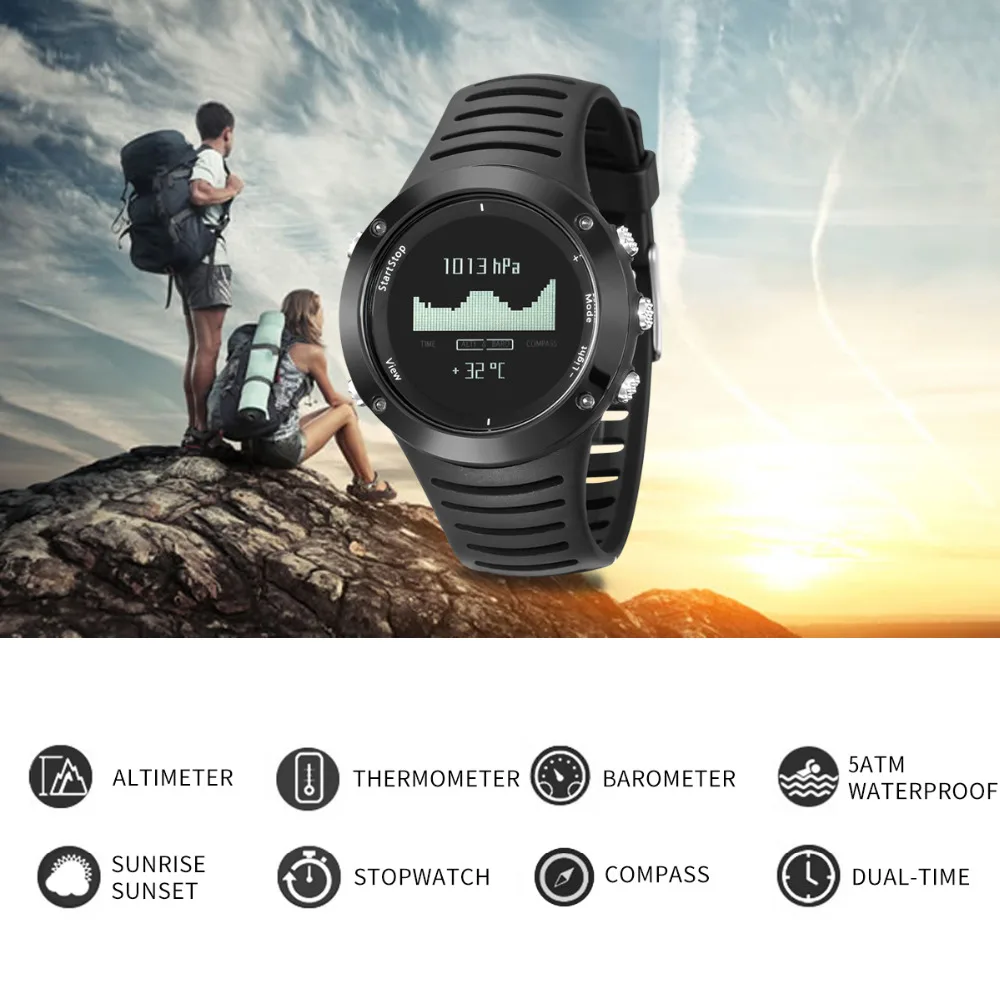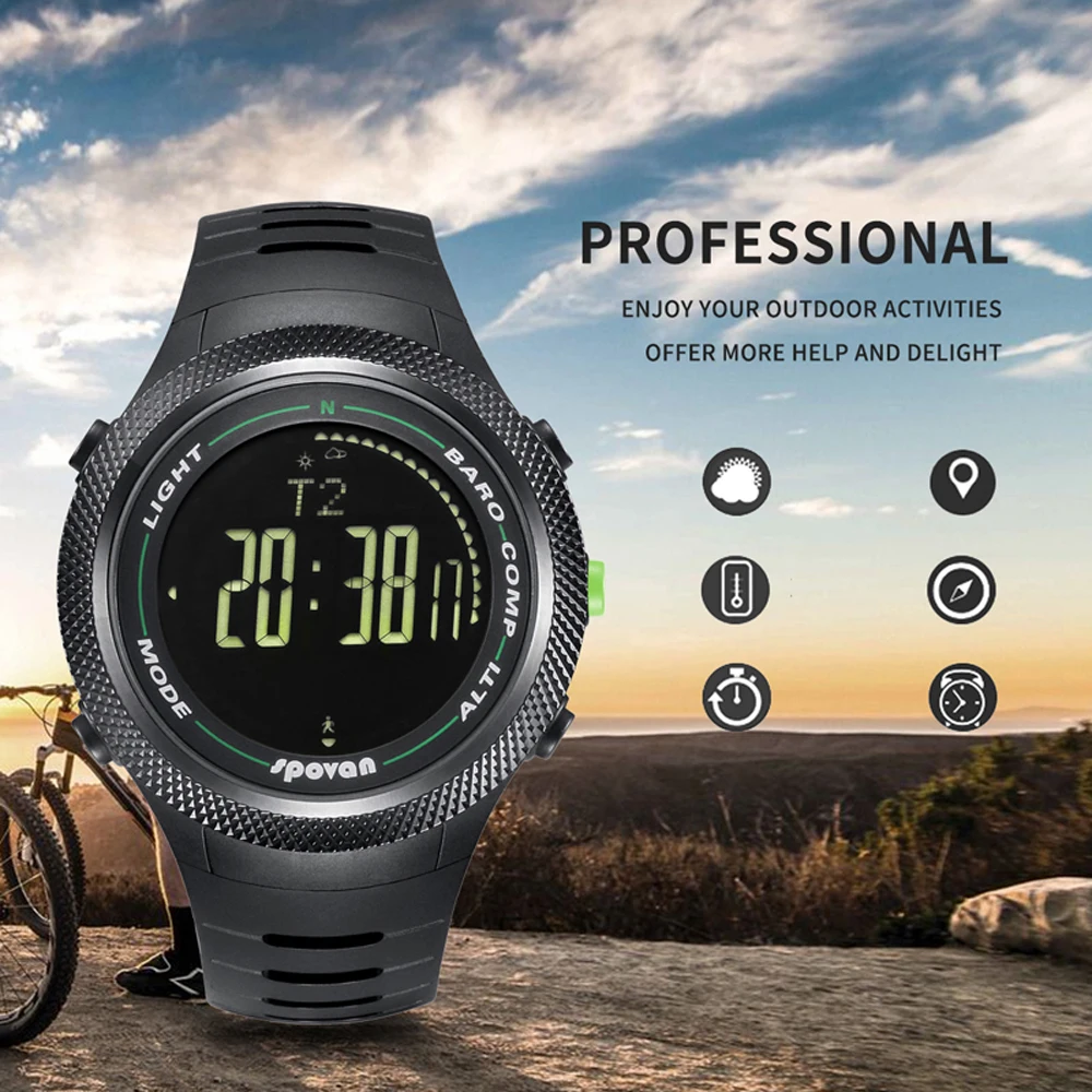 Профессиональный термометр Spovan, альтиметр, барометр, компас, цифровые спортивные часы для рыбалки, высокотехнологичные часы для скалолазания