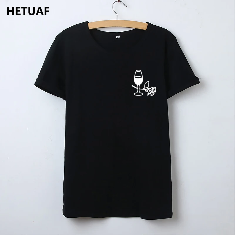 Женская футболка с графическим рисунком HETUAF, хипстерский топ с карманом и принтом винной розы, летняя футболка в стиле Харадзюку
