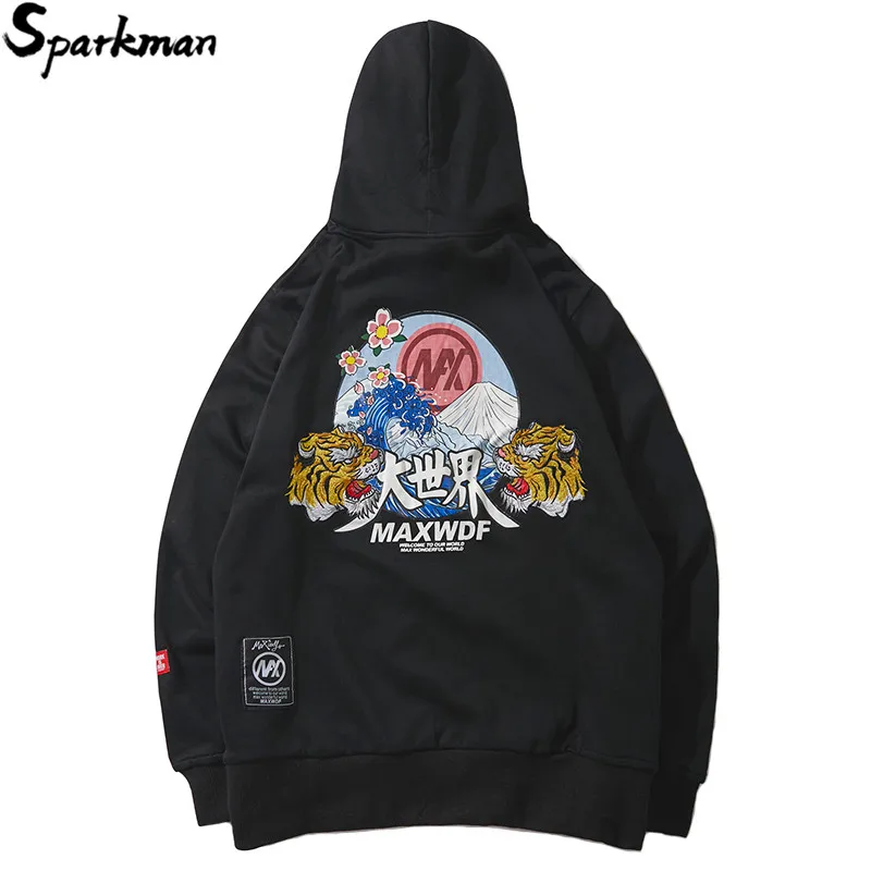 Мужские толстовки с капюшоном в стиле хип-хоп, китайский пуловер с вышивкой головы тигра, модный осенний Повседневный свитер 2018, уличная одежда