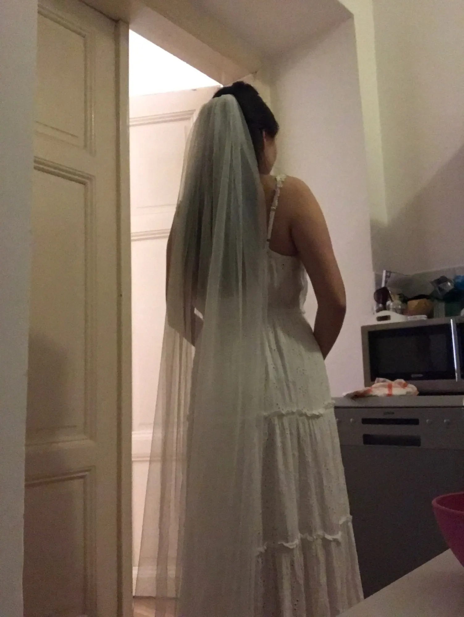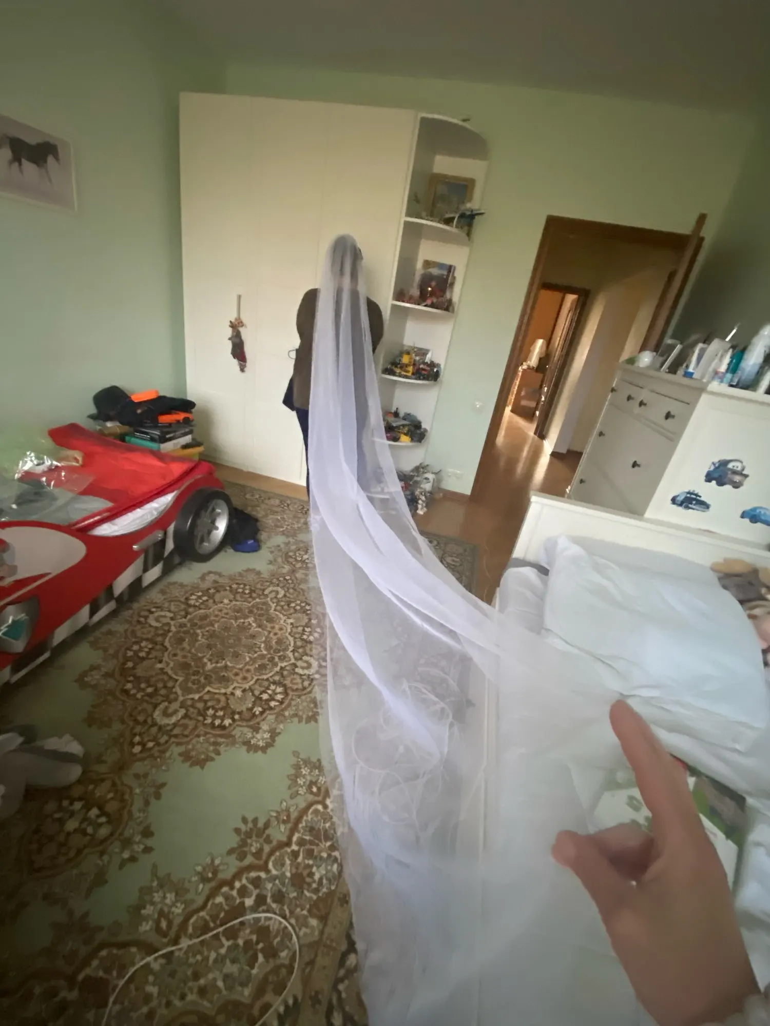 Вуаль выглядит нормально, но мне нужно помыть ее и погладить, прежде чем попробовать.