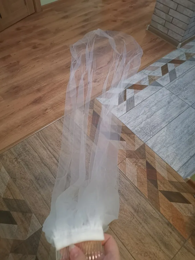 Вуаль идентична изображению. Тюль мягкий и тонкий, конец welonu вырезанный после колеса. Пластик Grzebyk, но выглядит очень крепким. Вуаль простая, без дополнительной отделки, но такая подходит для моего платья. Доставка от продавцов очень быстрая, только в Польшу, в то время как это przetrzymali, возможно, к Рождеству.