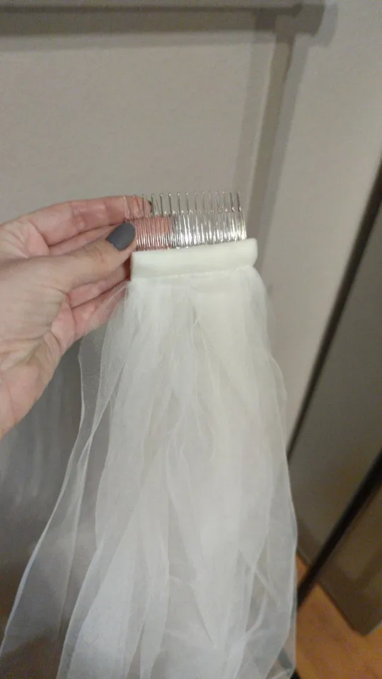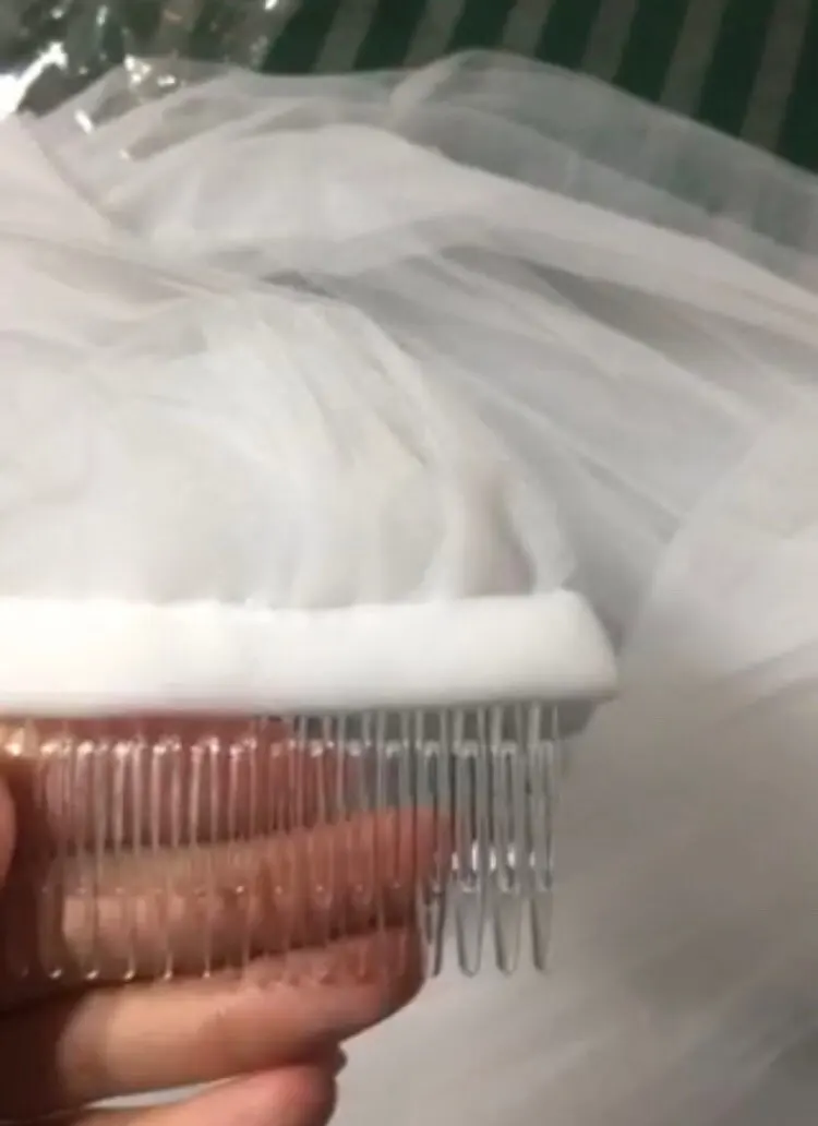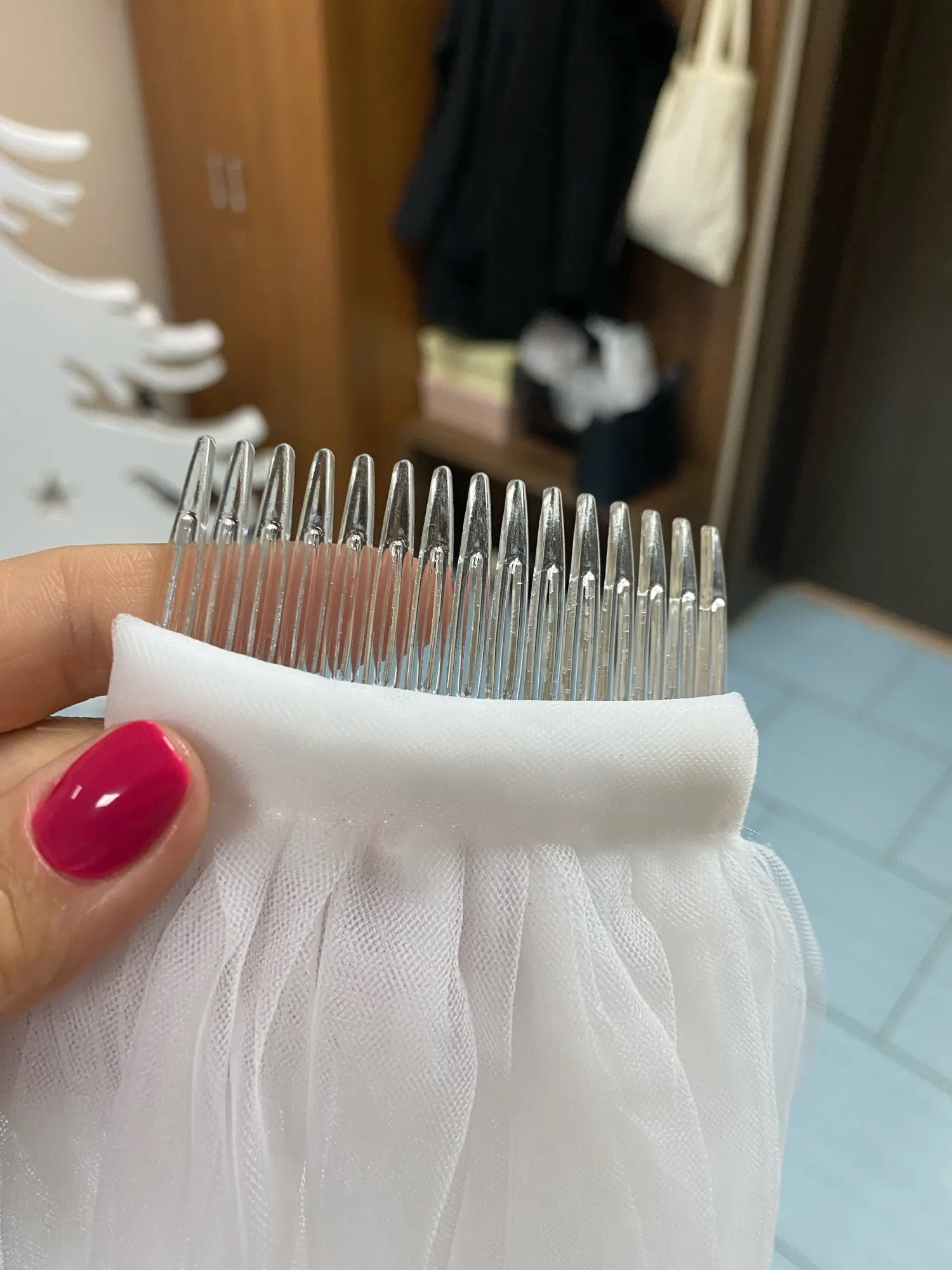 Покупкой довольна. Фата приятная к телу, тоненькая и мягкая. Гребень сидит крепко на волосах. До Москвы посылка дошла, примерно за 3 недели. Если будете стирать, то это только на руках.