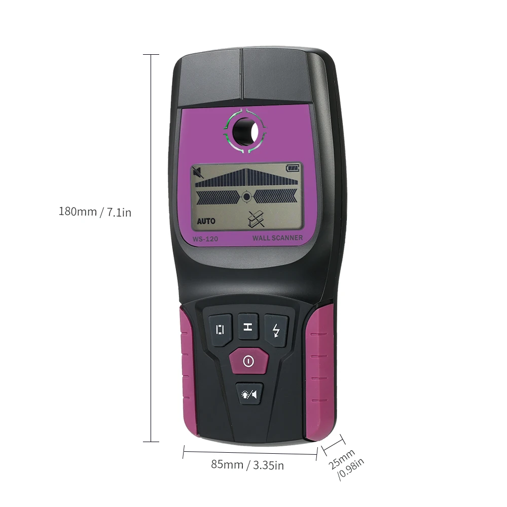 Сканеры стен, черных металлов и цветных металлов, медный деревянный кабель переменного тока, мигающий светодиодный светильник и звуковая индикация, WS-120 металлоискатель