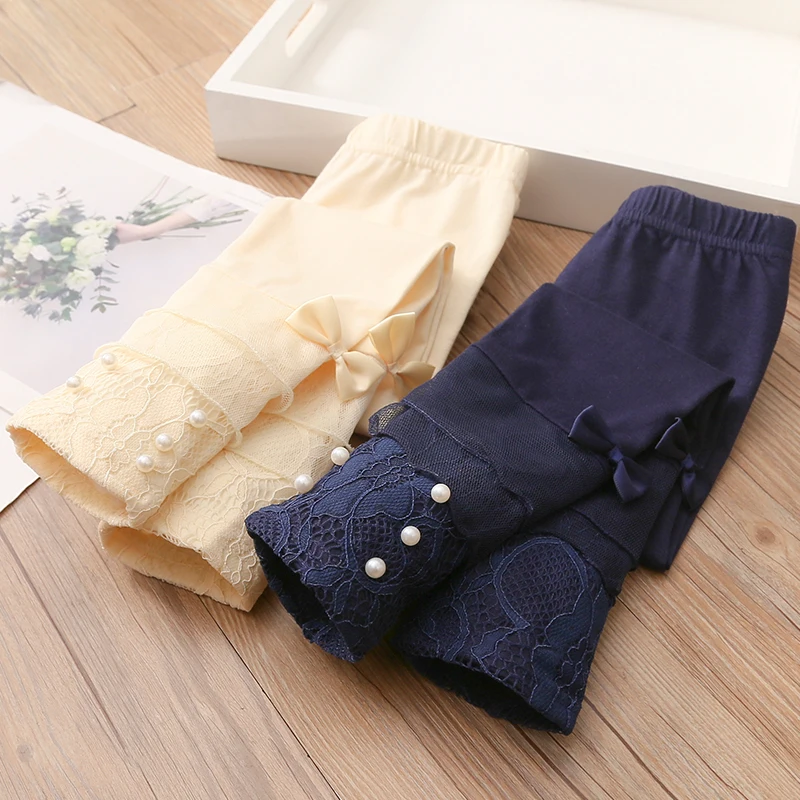 Леггинсы Детские демисезонные длинные с бантом, белые, темно-синие, бежевые