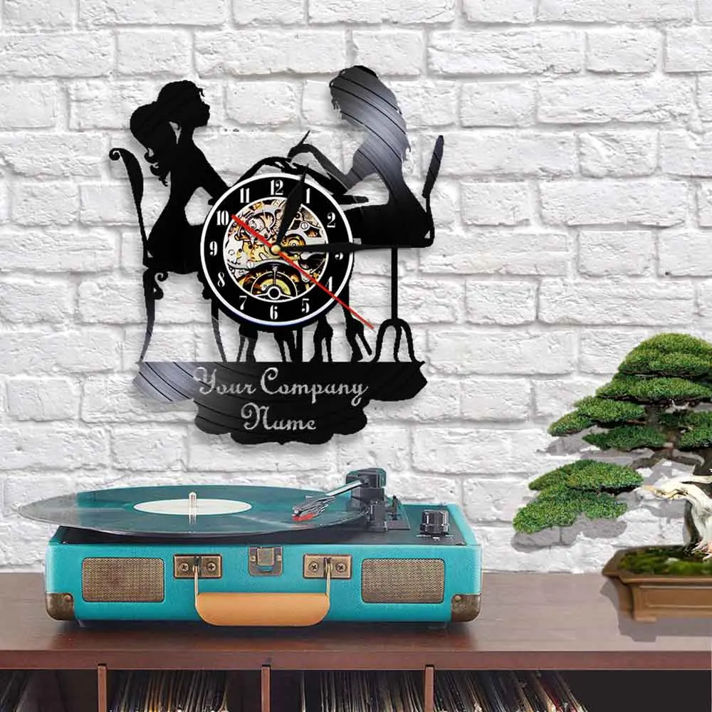 Настенные часы на заказ, виниловые украшения для салона красоты, с именем компании, с современным дизайном