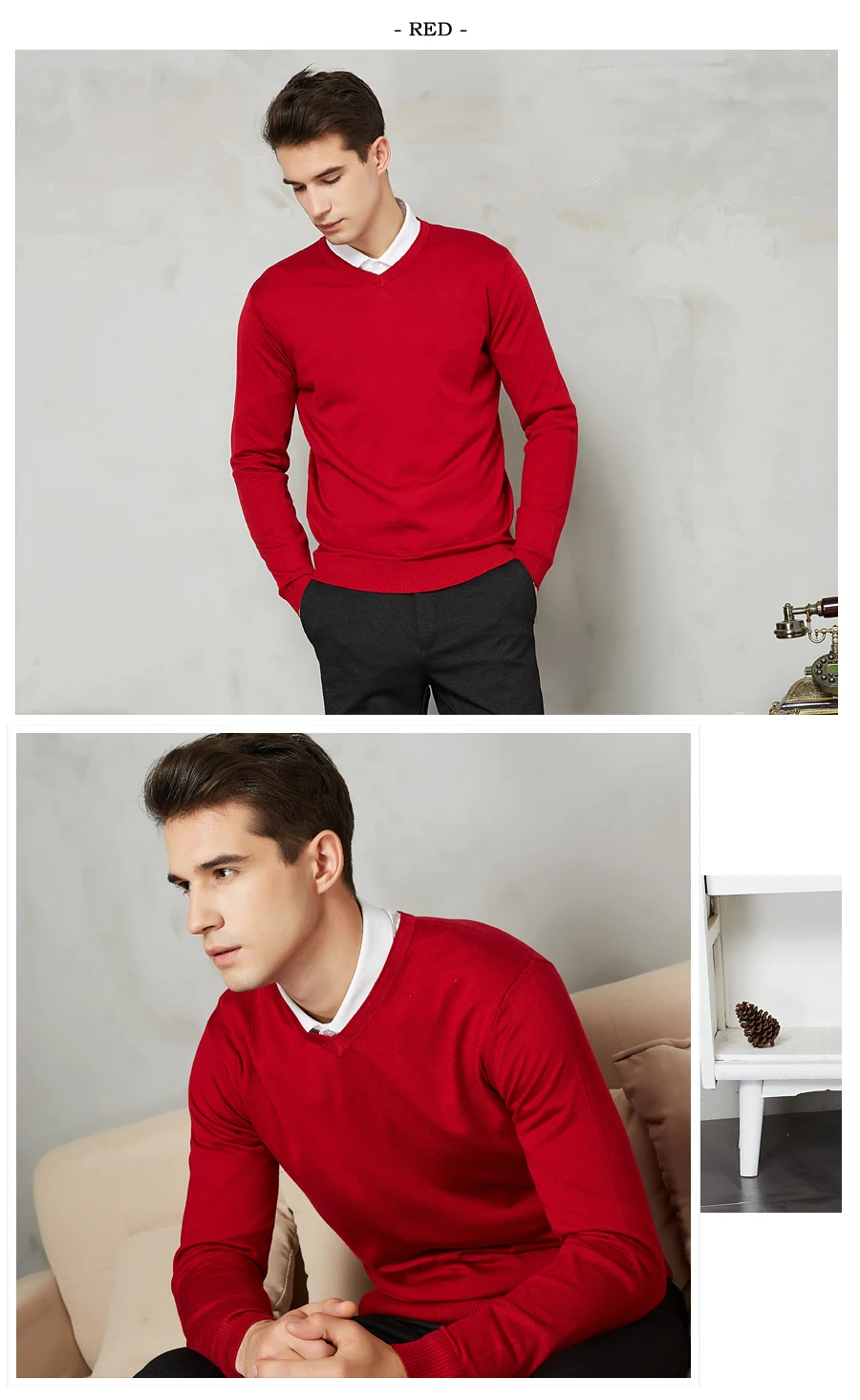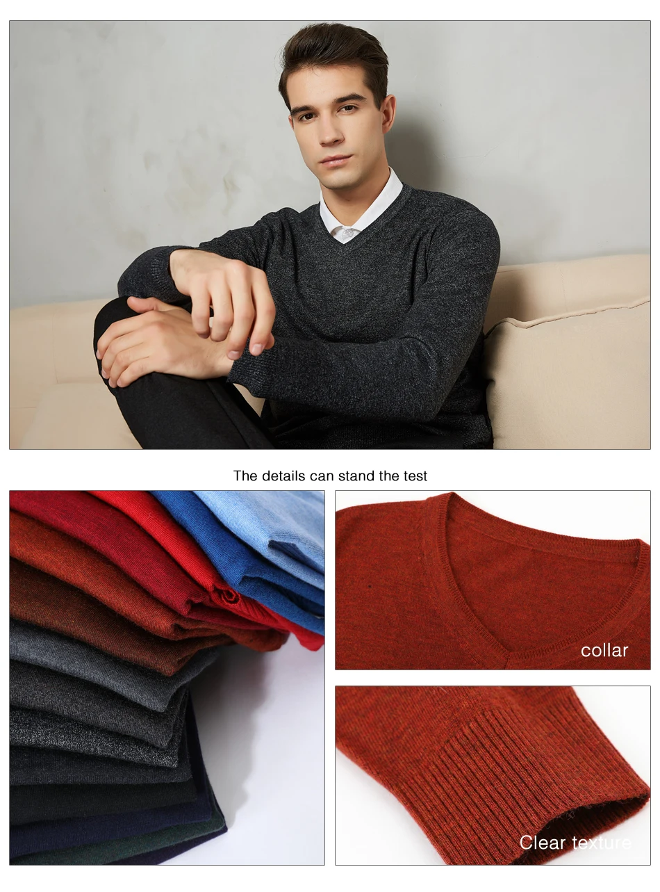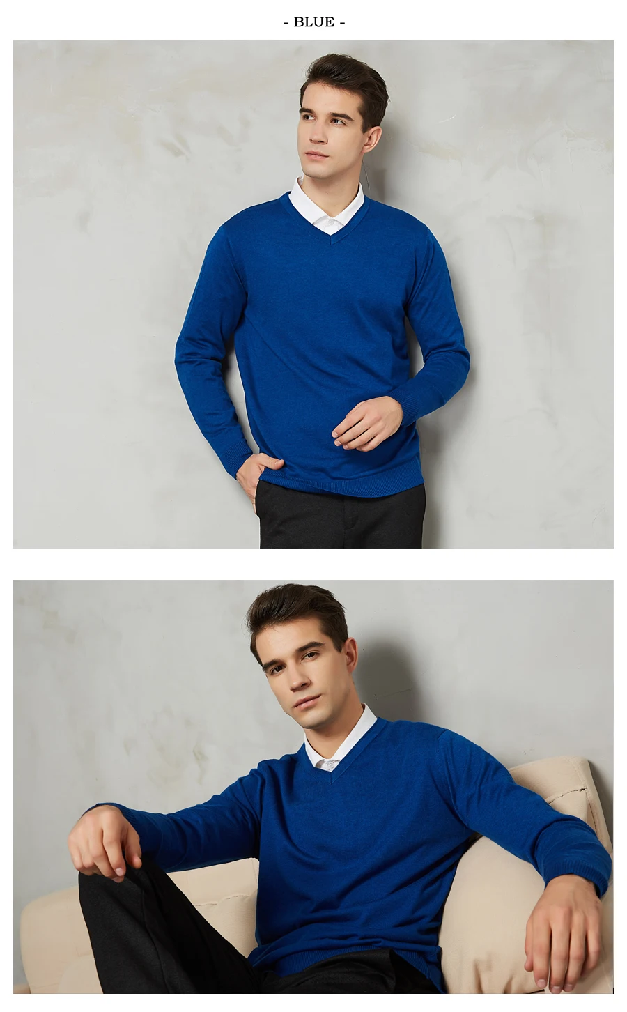 Свитер мужской осенний, тонкий, Повседневный, классический стиль, пуловер с вырезом в виде буквы V