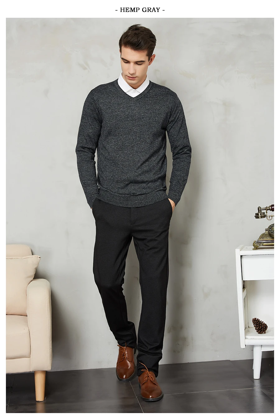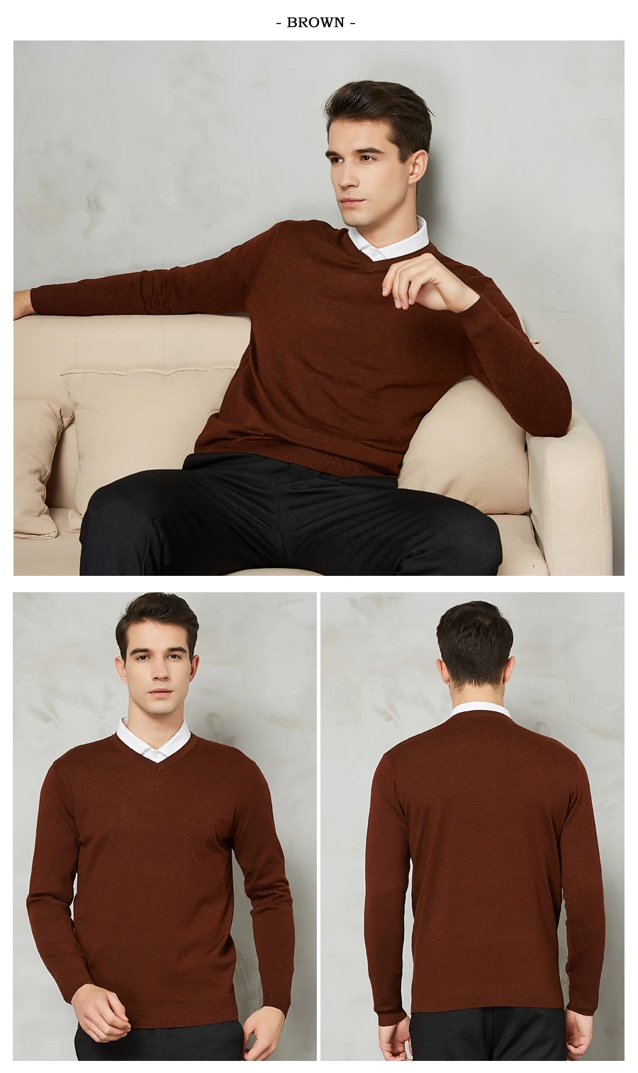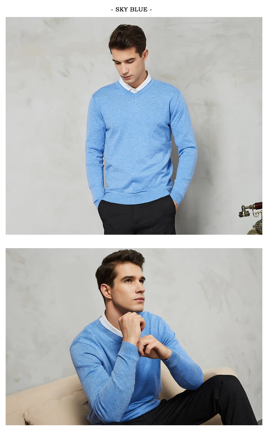 Свитер мужской осенний, тонкий, Повседневный, классический стиль, пуловер с вырезом в виде буквы V