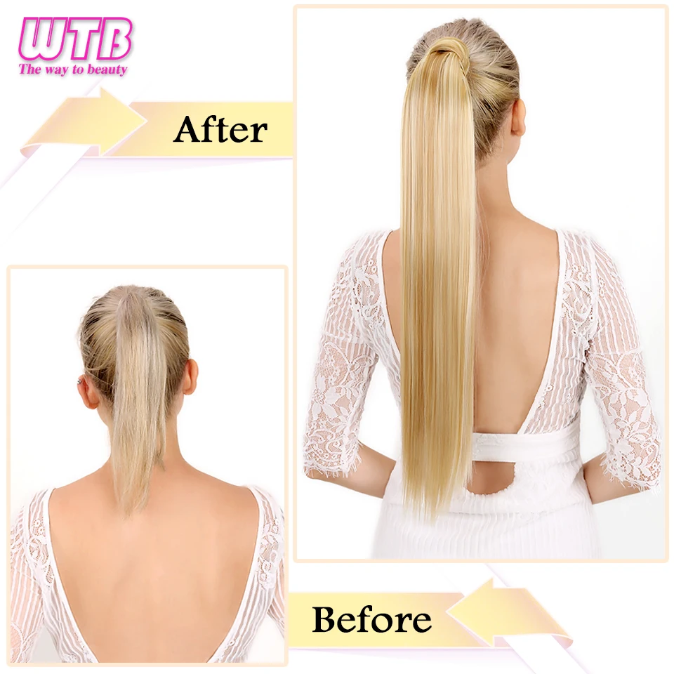 WTB синтетический накладной хвост для наращивания волос, Длинные прямые женские накладные волосы на заколке, конский хвост, накладные волосы 32 дюйма