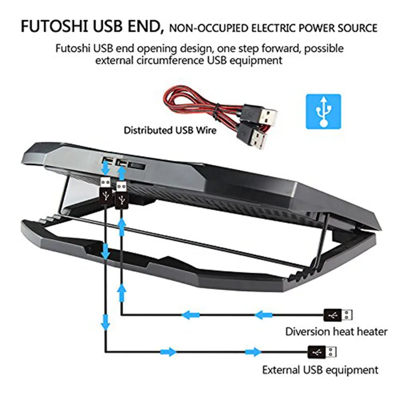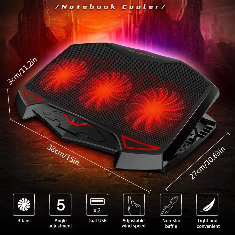 Охлаждающая подставка для ноутбука, с 3 тихими вентиляторами, регулируемая, с питанием от USB, подставка для крепления, для ноутбуков, 10-16 дюймов
