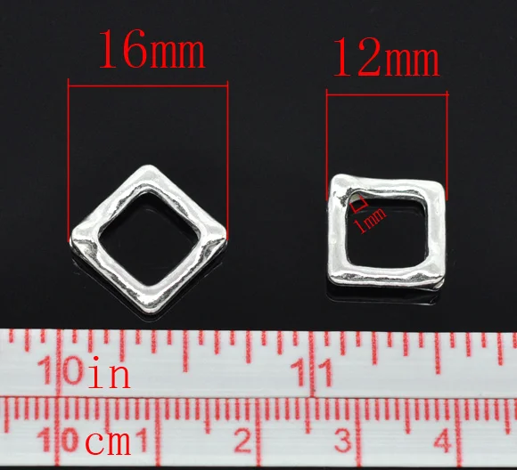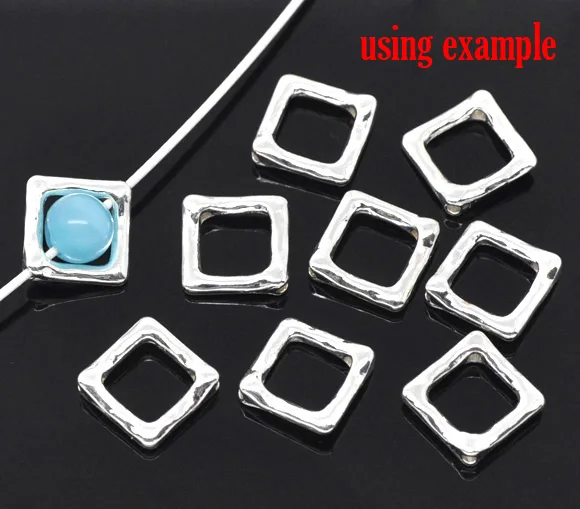 Бусины из сплава цинка DoreenBeads, квадратные посеребренные бусины для самостоятельного изготовления ювелирных изделий (подходят для бусин 8 мм), 12 мм x 12 мм, 10 шт.
