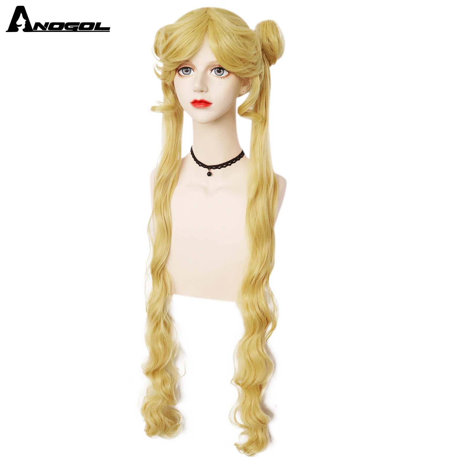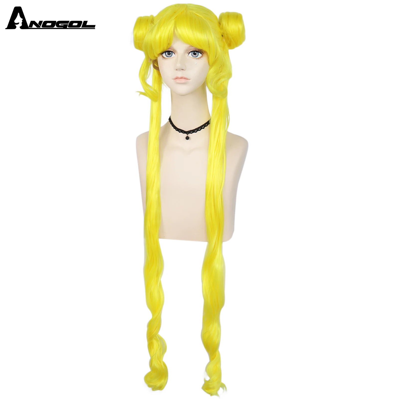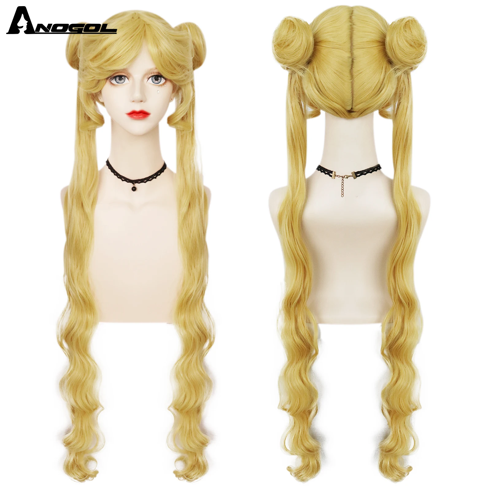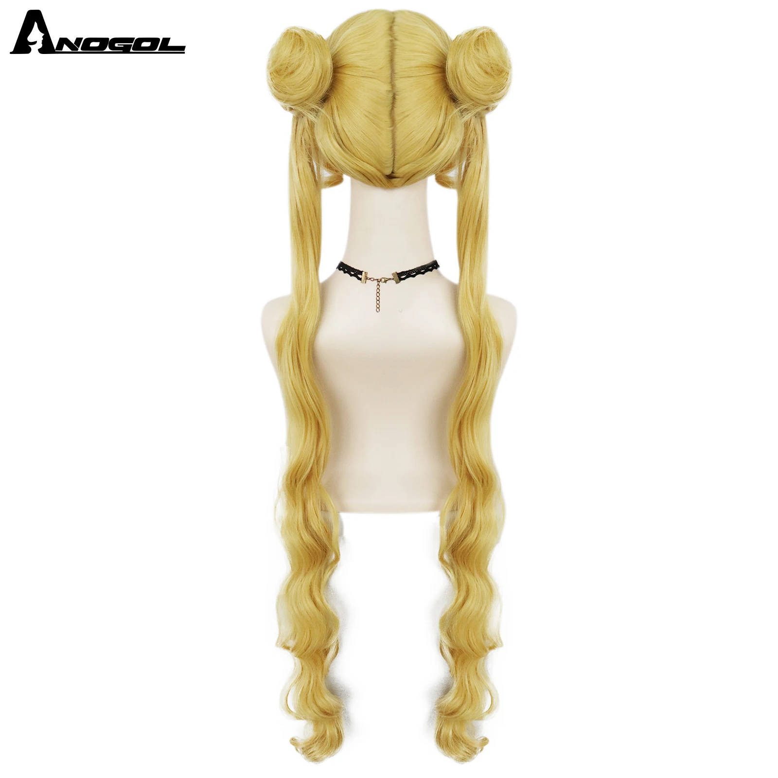 Anogol для Tsukino Usagi парик для косплея длинный кудрявый блонд двойной конский хвост Синтетический для девочек костюм для вечевечерние НКИ Хэллоуин + парик шапочка