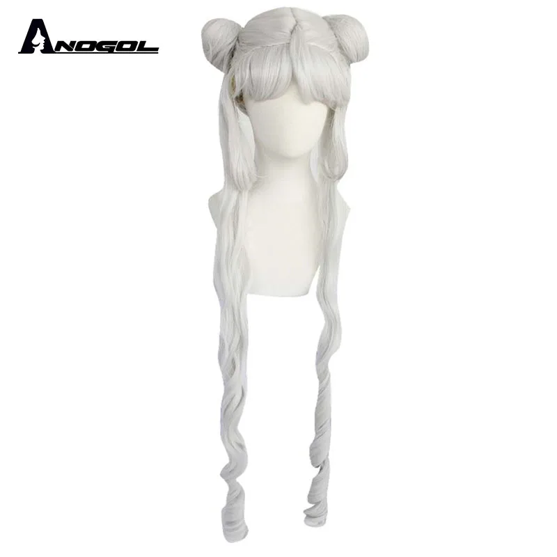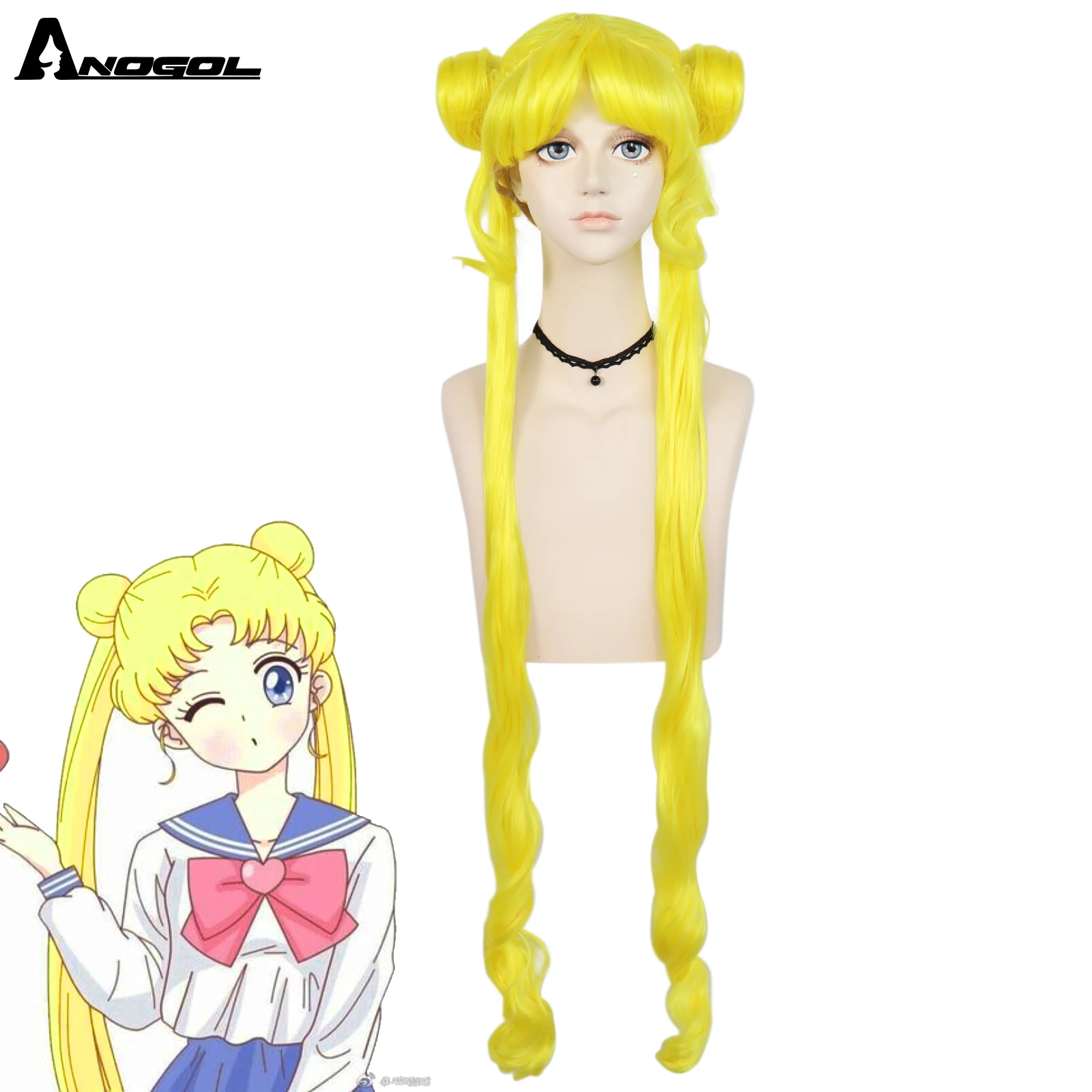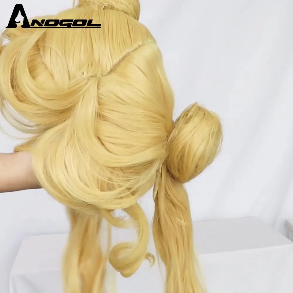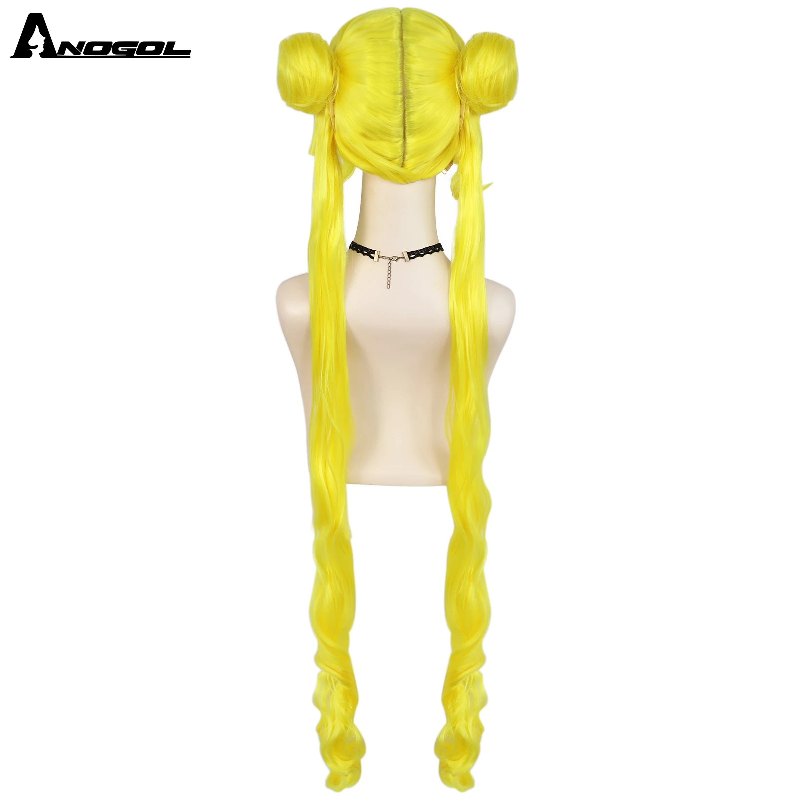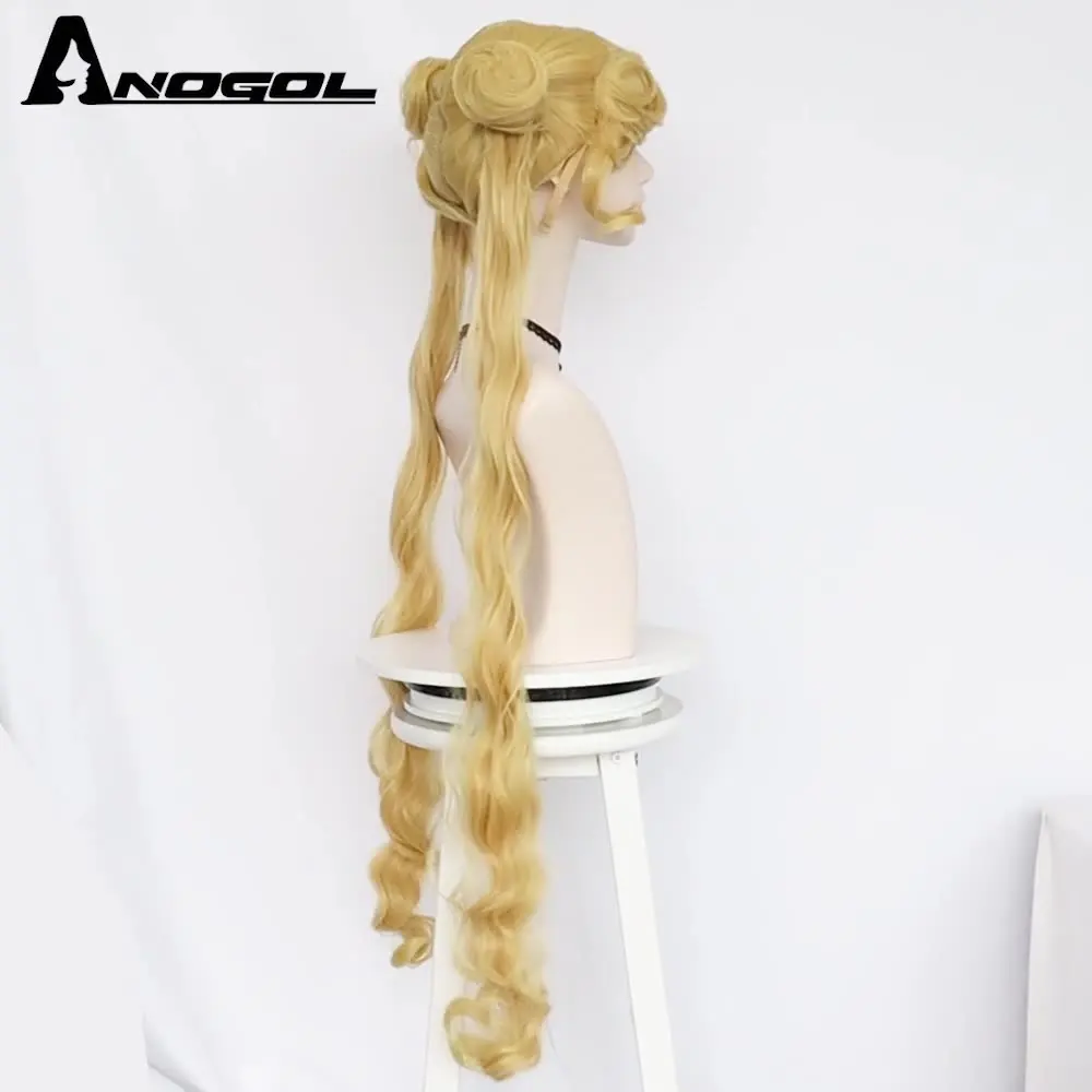 Anogol для Tsukino Usagi парик для косплея длинный кудрявый блонд двойной конский хвост Синтетический для девочек костюм для вечевечерние НКИ Хэллоуин + парик шапочка