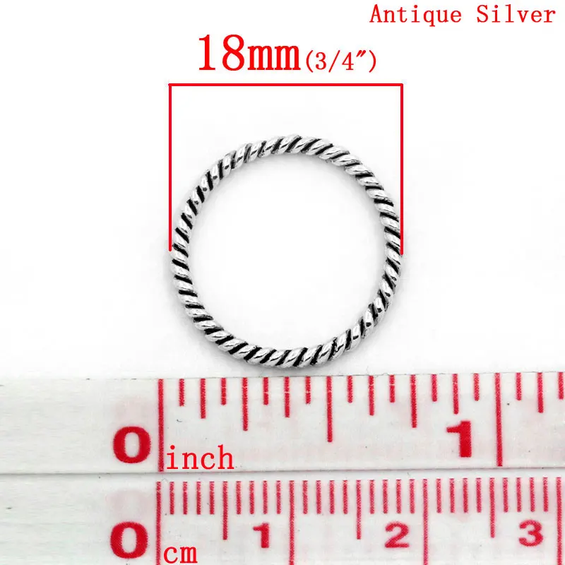 DoreenBeads Закрытая пайка кольца из цинкового сплава, круглые антикварные серебряные полосатые кольца диаметром 18,0 мм (68 "), 25 шт., новинка 2015