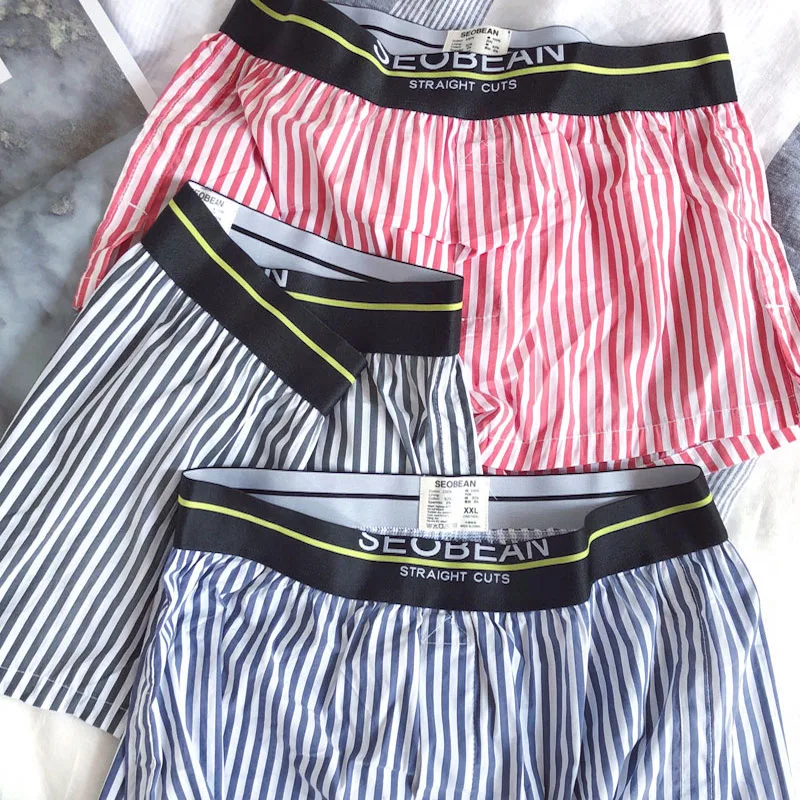 Мужской спортивный костюм SEOBEAN в полоску, домашние повседневные плавки, пижамные шорты, очень тонкие шорты, пижама с u-образной подкладкой