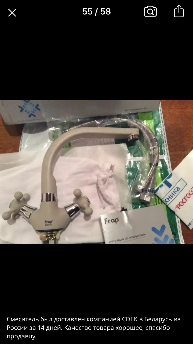 Отличный кран. Очень понравился. Доставка быстрая из России. И прямо в руки. Очень доволен. Спасибо