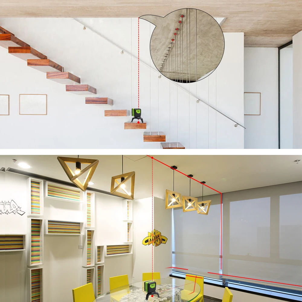 Два режима:Функция самовыравнивания, которая дает точные отметки почти мгновенно. Ручной режим выполняет Компоновочные задачи с любым углом, который вам нравится. (Не может переключаться с горизонтальных и вертикальных линий на точки).
