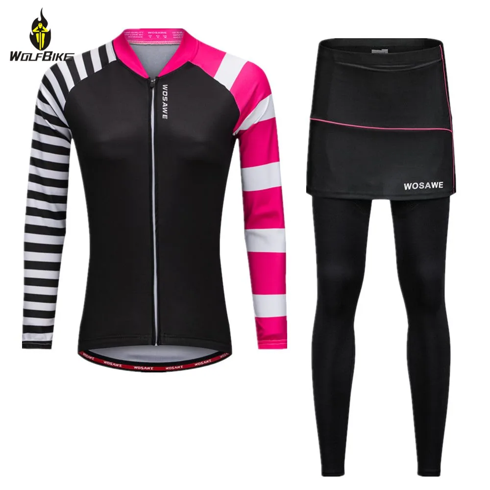 WOSAWE Женский комплект из Джерси для езды на велосипеде MTB рубашки для езды на велосипеде гелевые подушки юбка брюки для езды на шоссейном велосипеде костюм с длинным рукавом