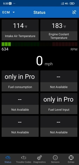Чтение диагностических кодов неисправностей, как общих, так и специфических для производителя, и отображение их значения. (более 3000 общих кодов в базе данных).Очистить коды неисправностей и выключить MIL ("Проверьте двигатель" светильник)Двигатель об/минРасчетная Нагрузка валуТемпература охлаждающей жидкостиСостояние топливной системыСкорость транспортного средстваКраткосрочная топливная отделкаДолгосрочная топливная отделкаДавление впускного коллектораПредоплата времениТемпература впускного воздухаРасход воздухаАбсолютное Положение Дроссельной заслонкиНапряжение кислородного датчика/соответствующая кратковременная топливная планкаСостояние топливной системыДавление топливаМного других продуктов
