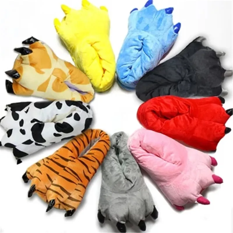 Новинка 2019, зимние мужские тапочки FeiYiTu с забавными лапами животных, Симпатичные плюшевые тапочки унисекс с когтями, домашняя обувь черного и красного цвета