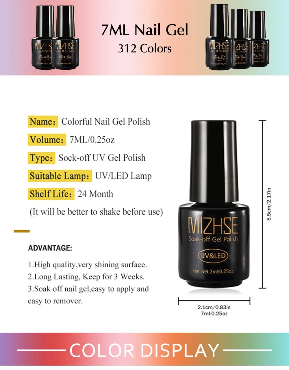 MIZHSE 312 горячая Распродажа цветной УФ Гель-лак для ногтей отверждаемый Светодиодная лампа Гель-лак Полупостоянный лак для ногтей 7 мл