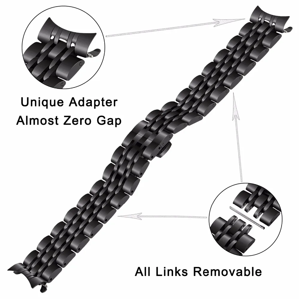 -Особенности:Уникальный дизайн, практически нулевой зазор, чтобы соответствовать вашему Gear S3; Элегантный и модный, гладкий, прочный и удобный в носке; Легко снять звенья и установить в соответствии с нашими рекомендациями и прилагаемым инструментом.
