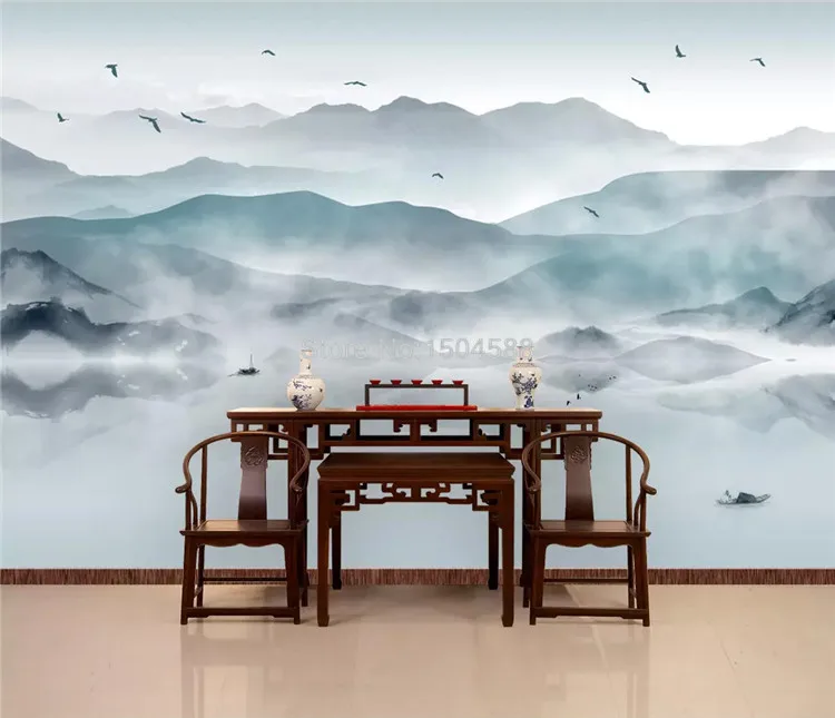 Настенные 3D фрески на заказ, абстрактные чернила в китайском стиле, пейзаж, живопись, художественные обои для гостиной, кабинета, домашний декор
