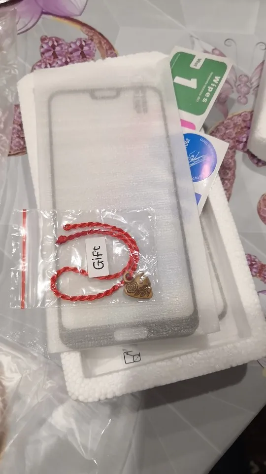 Доставка быстрая, подарочек в комплекте. Но здоровенные непроклейки по бокам... Полный отстой... Повелся на эти стекла, так как больше не нашел на Honor 10 стекол с открытой передней камерой. До этого брал дороже у другого продавца, с закрытой стеклом передней камерой-там было все отлично. Хотя бы клали в комплект жижу для боков...