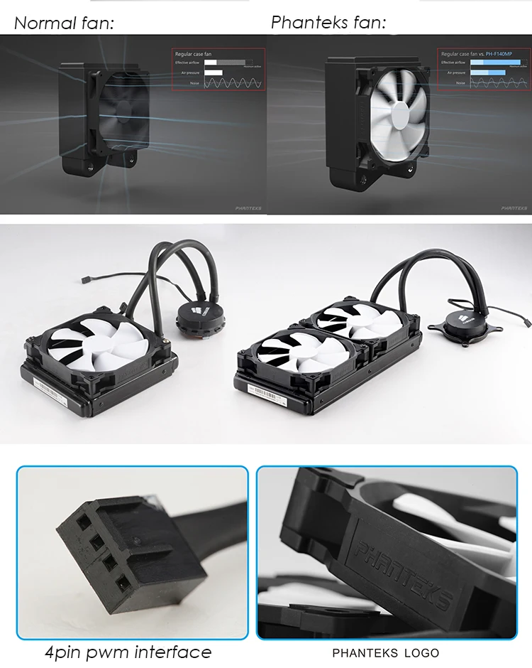 Phanteks черный, белый, 4-контактный PWM 12 см, вентилятор 14 см, радиатор 12 В, компьютерные вентиляторы, гидравлический подшипник слайд, подключение к цепи 140MP