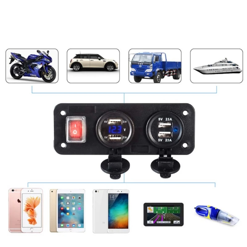 12 В 24 в 4 USB-адаптера для зарядного устройства светодиодный вольтметр с панелью переключения для автомобиля, лодки, грузовика