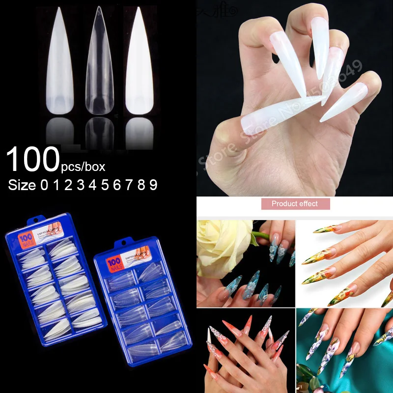 Искусственные Типсы для ногтей, длинные, 100 шт.кор., 10 размеров, накладные Типсы для ногтей для салона, акриловые Типсы для ногтей, 3 цвета на выбор