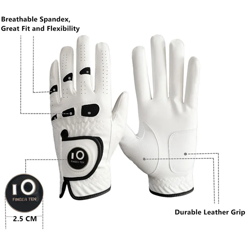 Перчатки для гольфа для левой и правой руки, мужские, из мягкой кожи, Нескользящие, для любых погодных условий, дышащие, с шариковым маркером, прочные, Прямая доставка