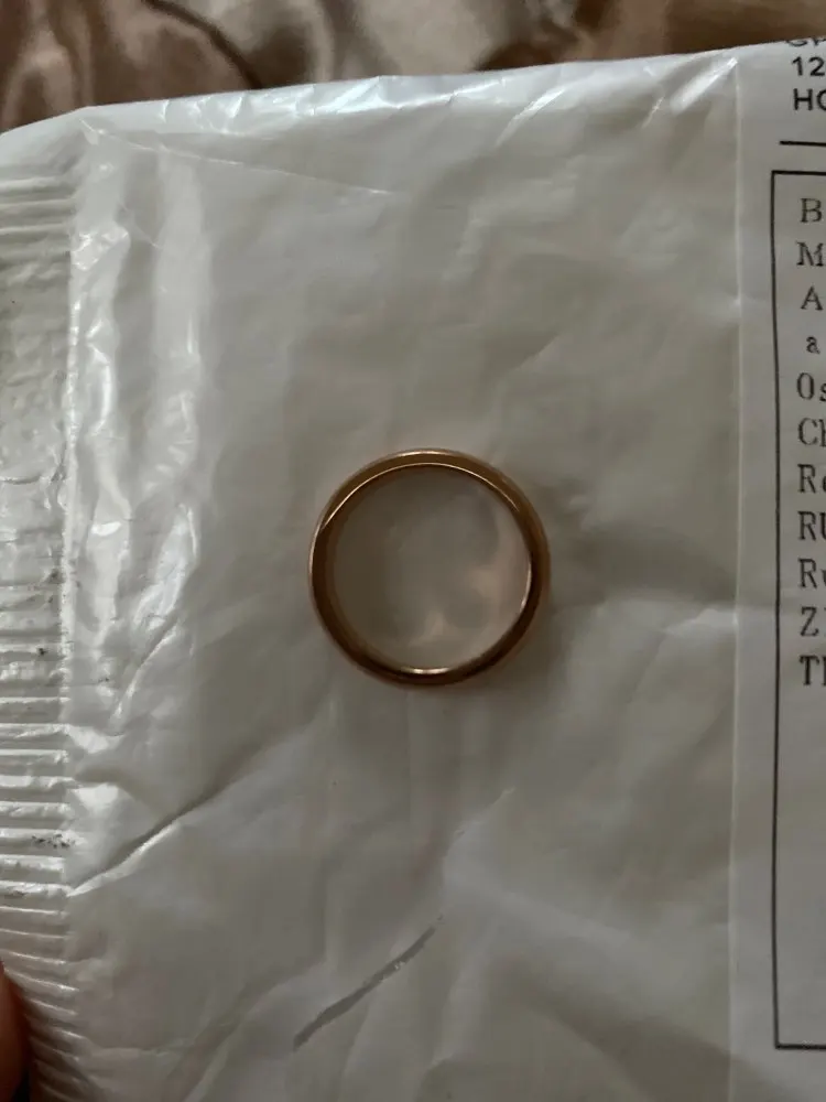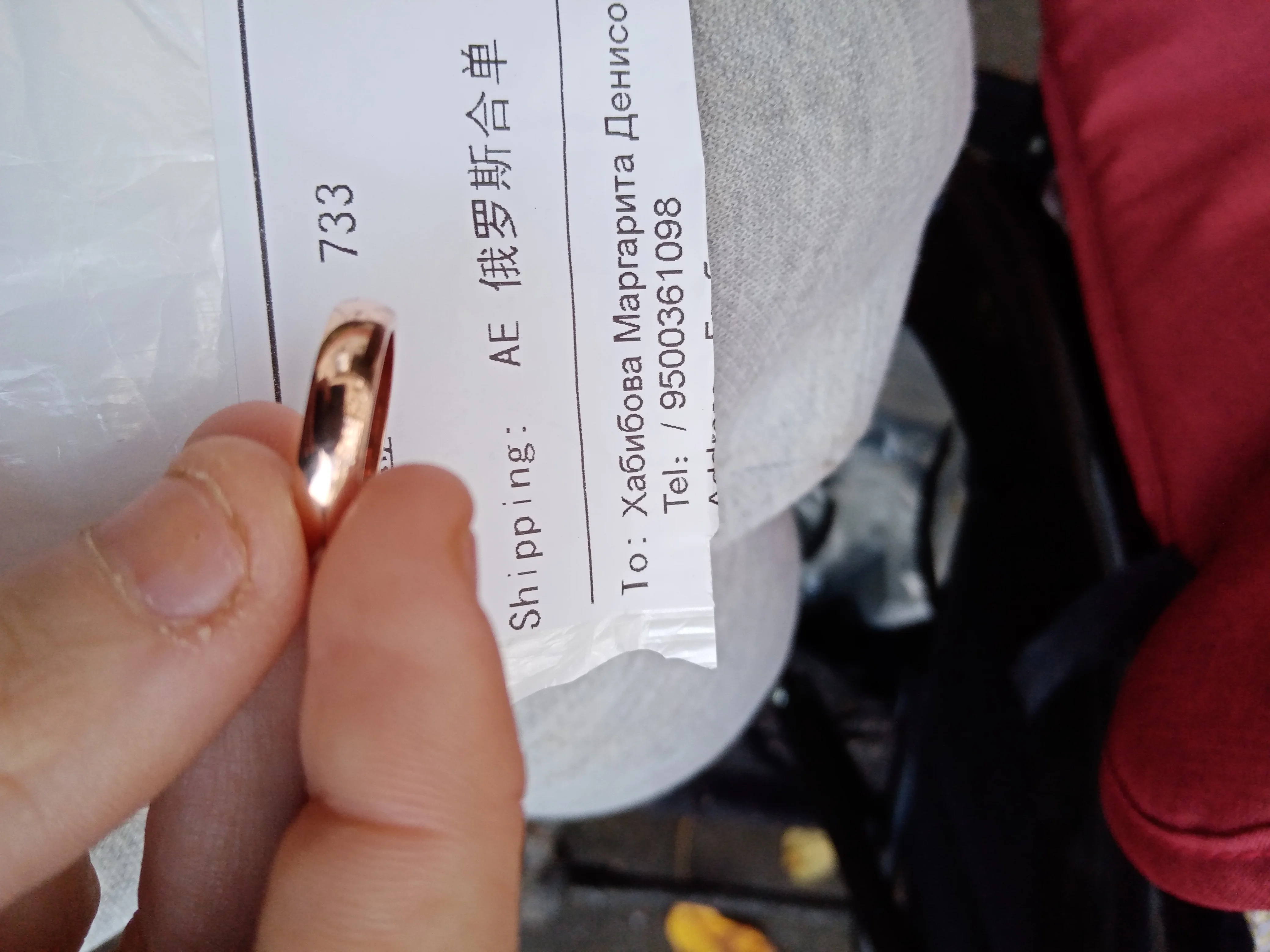 кольцо по качеству отличное, от реального золота не отличается вообще, не знаю, насколько хватит покрытия и можно ли его мочить, в отзывах противоречивые комментарии. Единственное, что скорее на мужскую руку, чем на женскую. Грубовато смотрится, из-за этого вряд ли буду носить. Размер 6 на 16 размер пальца идеально сидит. Рядом золотое кольцо.Шло месяца 2 до Тюмени