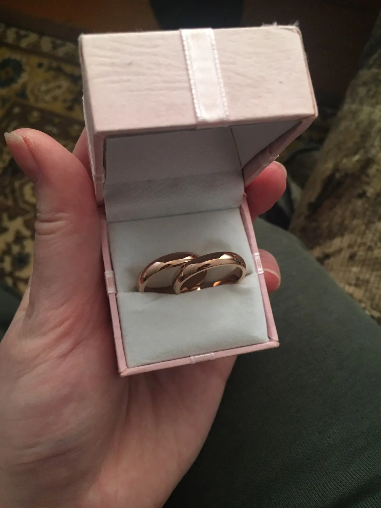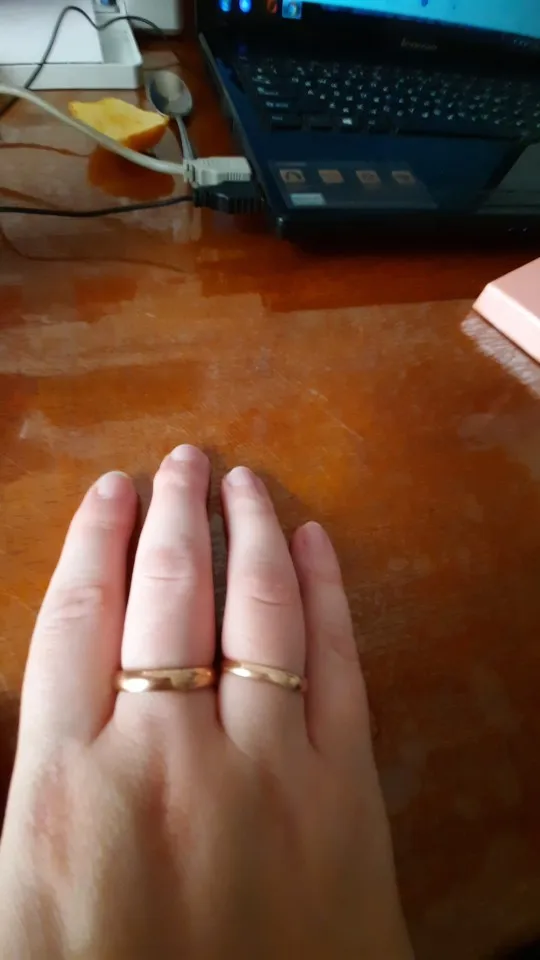 Кольца бомбезные, выглядят как золото 585 пробы. На 18 размер пальца лучше заказать 9 размер. Посылка дошла за 9 дней, очень быстро. Но быстро из-за того, что 2 кольца. Со временем они будут стираться, но не чернеть. С продавцом не общалась. Заказывайте, не пожалеете!
