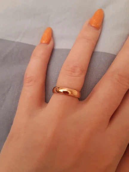 многие пишут, что кольцо толстое, но оно для меня оно нормальное. выглядит как золото, по размеру подходит